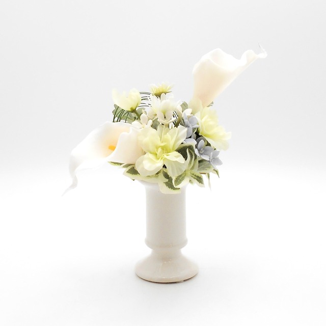 仏花 アレンジ ミニ大きめ 百合・カラーの花 アーティシャルフラワー 仏壇 供花 お彼岸 お盆