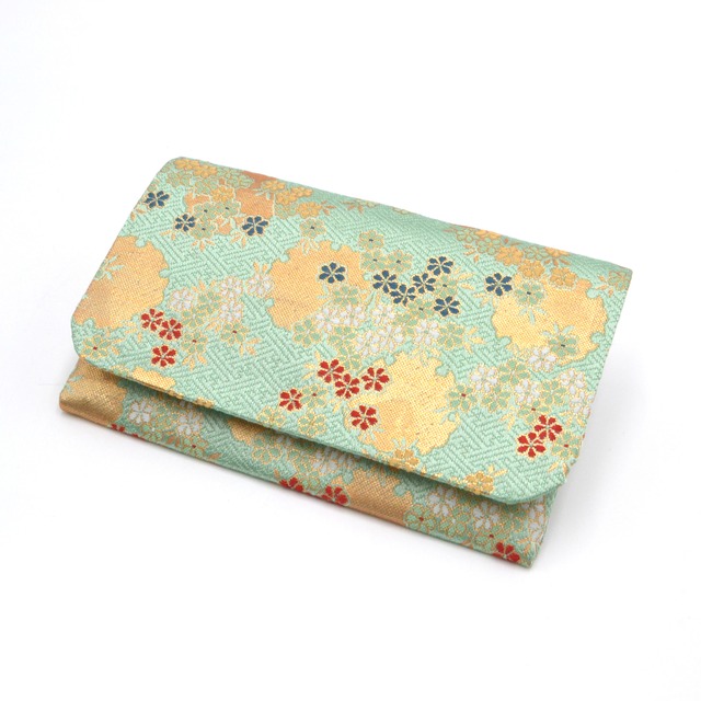 極々薄い黄緑色を背景にピンク系のお花模様が 散りばめられています 優しく、可愛らしい印象です 年齢問わず長くご愛用いただけるデザインです。 大切なお数珠を保護するため、 柔らかめのふんわりクッション性があります。 ■サイズ 約10×15.5〜16cm ■表地:表装裂 ■裏地:ポリエステル 白色(牡丹唐草) ■基本的には一般的な男女の片手数珠及び女性用の二輪念珠を入れることが出来ます。本念珠は場合により入れることが出来ません ■布地の裁断箇所に応じて模様の出方が多少変わります ■マグネットボタン式