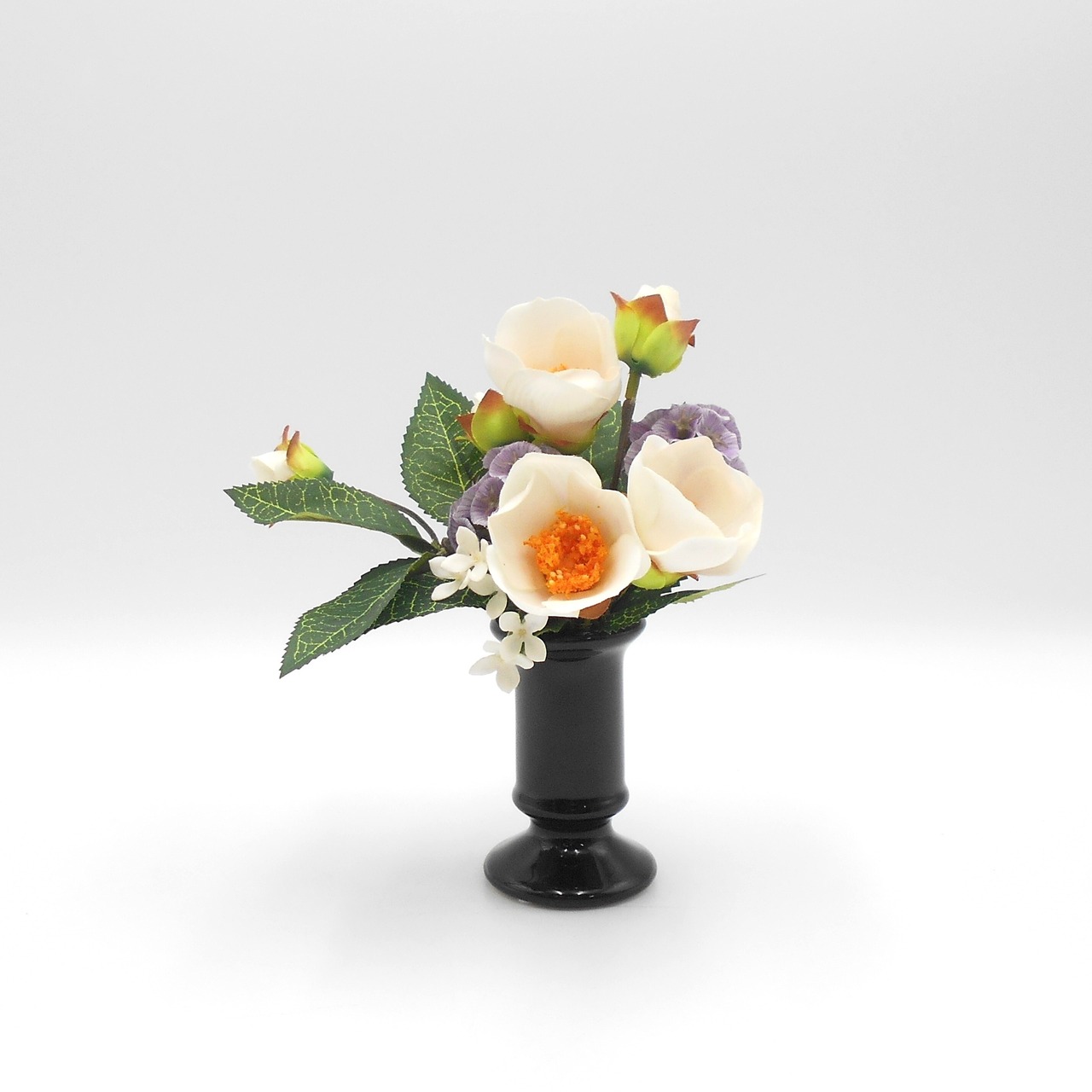 仏花 アレンジ 総高さ19㎝ 白椿 アーティシャルフラワー 仏壇 供花 お彼岸 お盆