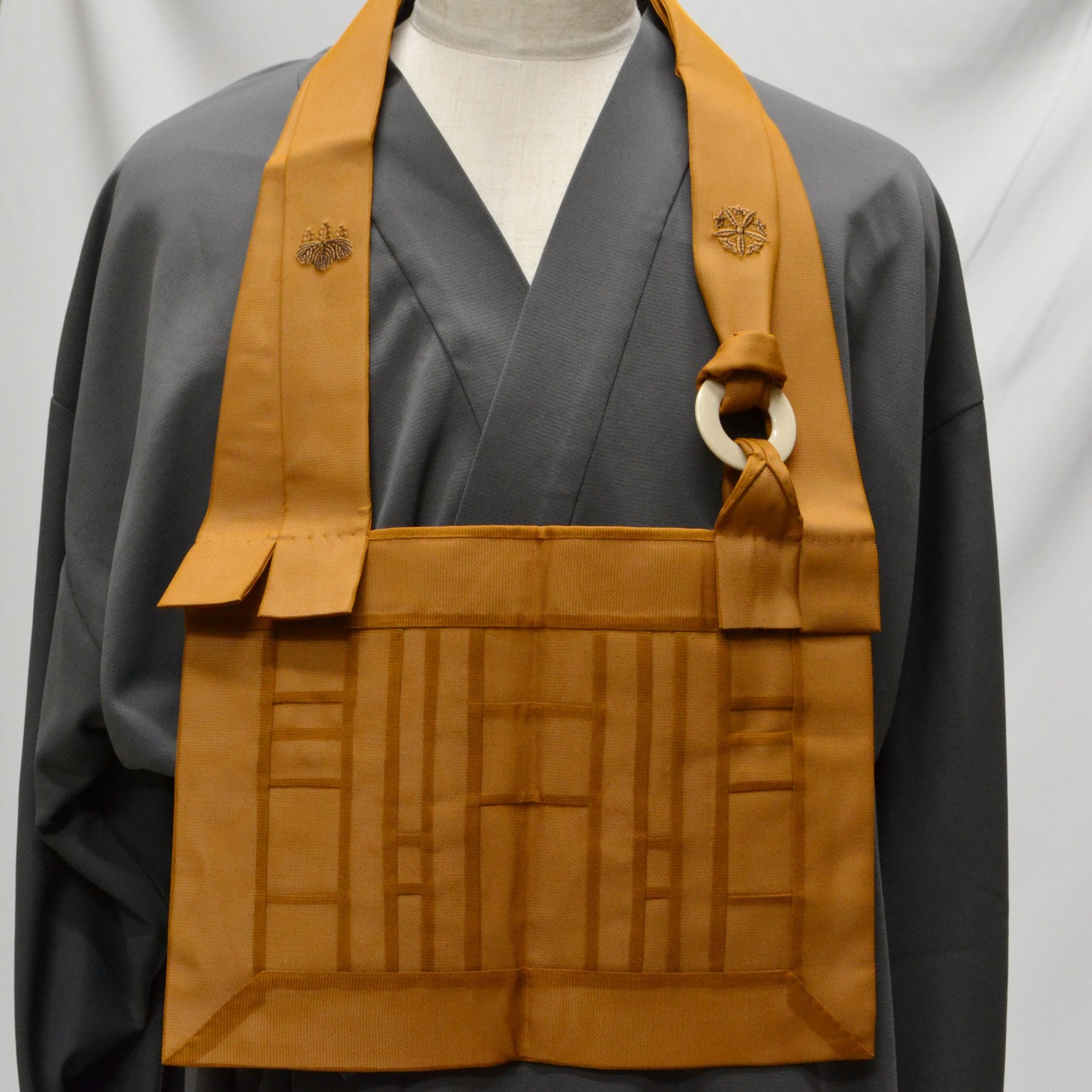 絡子 九寸仕立 曹洞宗 正絹紗 木蘭色 両山紋刺繍 法衣 寺院用仏具 送料無料