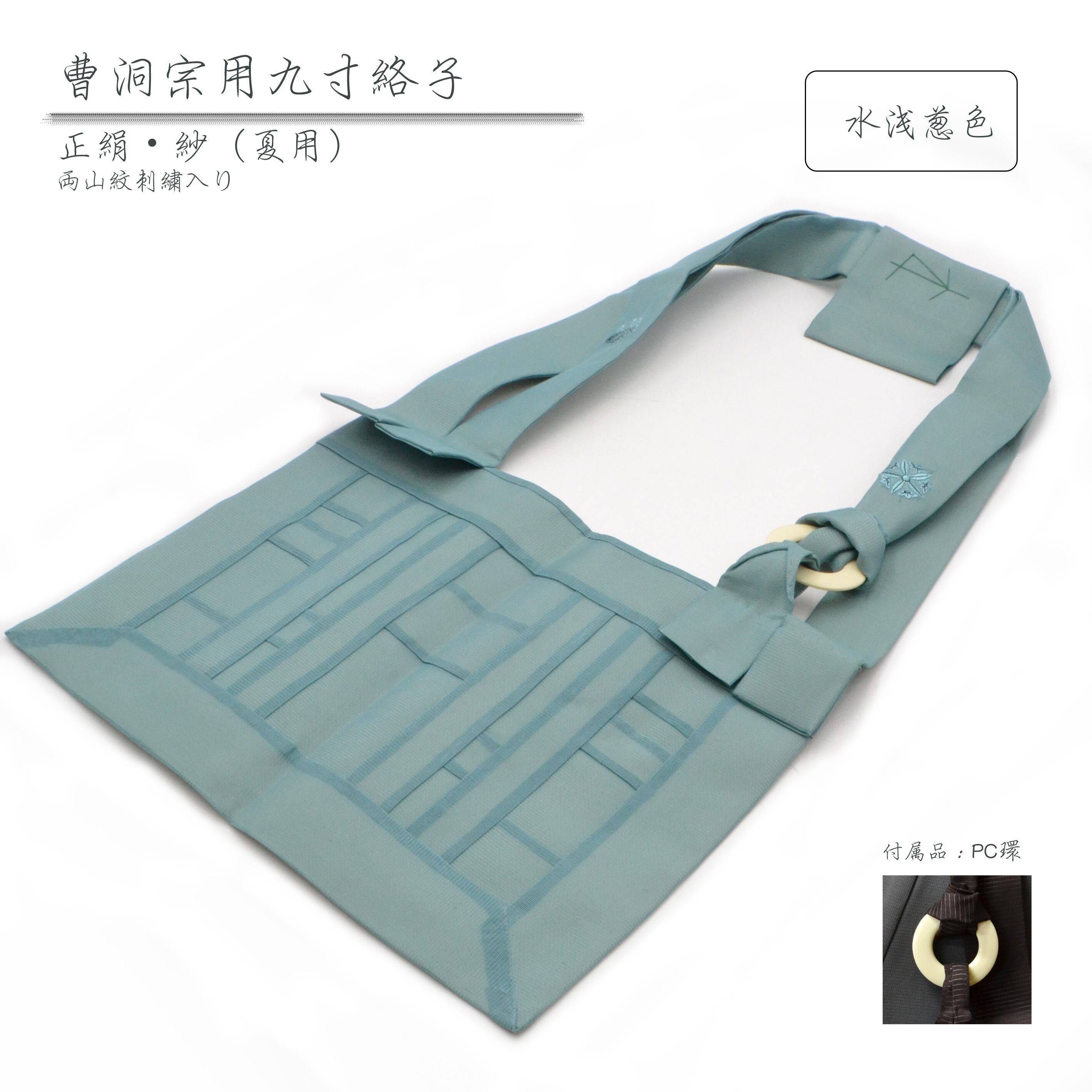 絡子 九寸仕立 曹洞宗 正絹紗 水浅葱色 両山紋刺繍 法衣 寺院用仏具 送料無料
