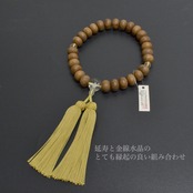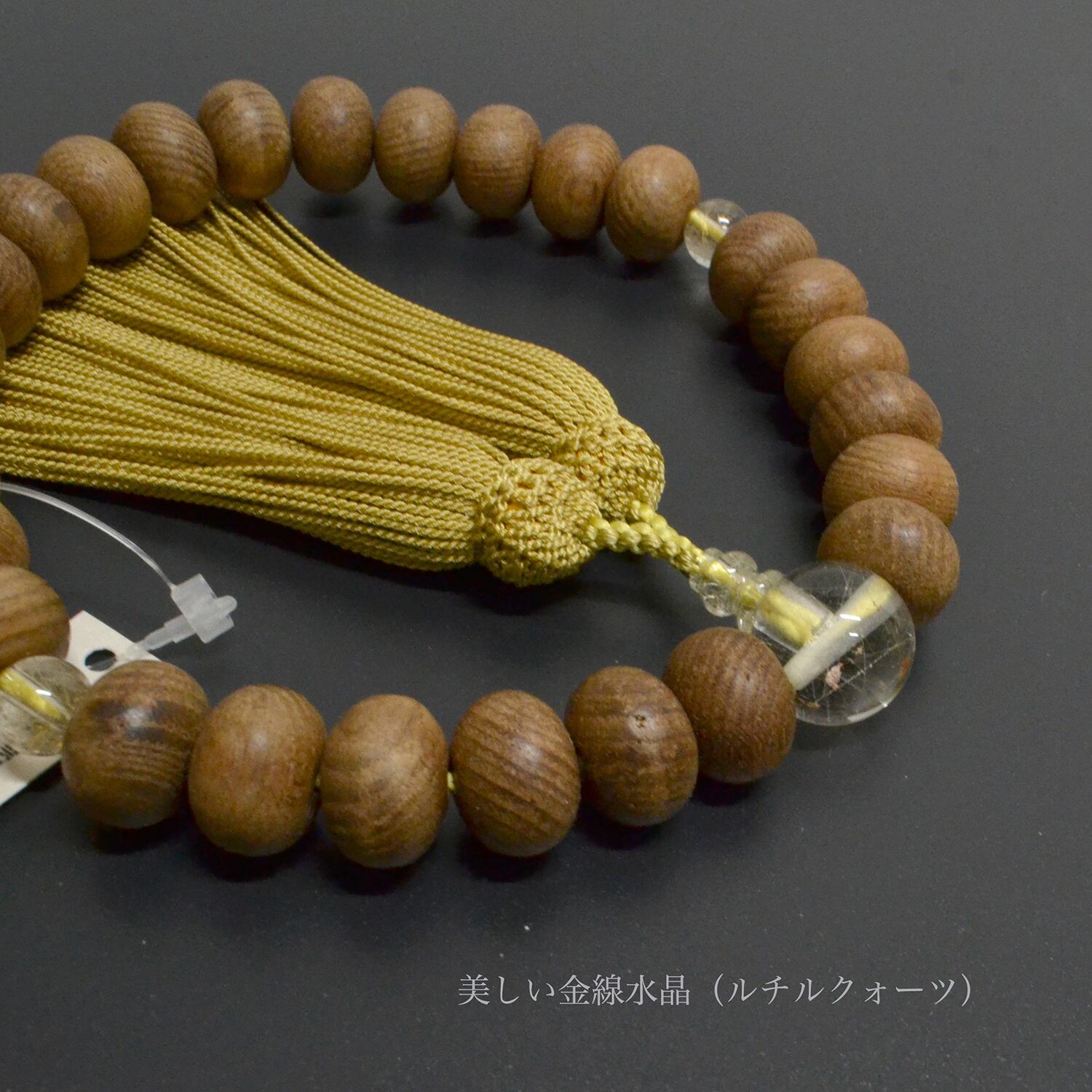 素挽平玉の槐に金線水晶(ルチルクォーツ)が入った素敵お数珠。