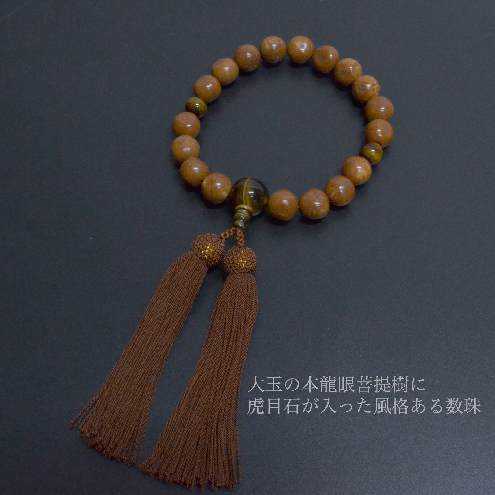 本龍眼菩提樹 虎目石仕立て 18玉