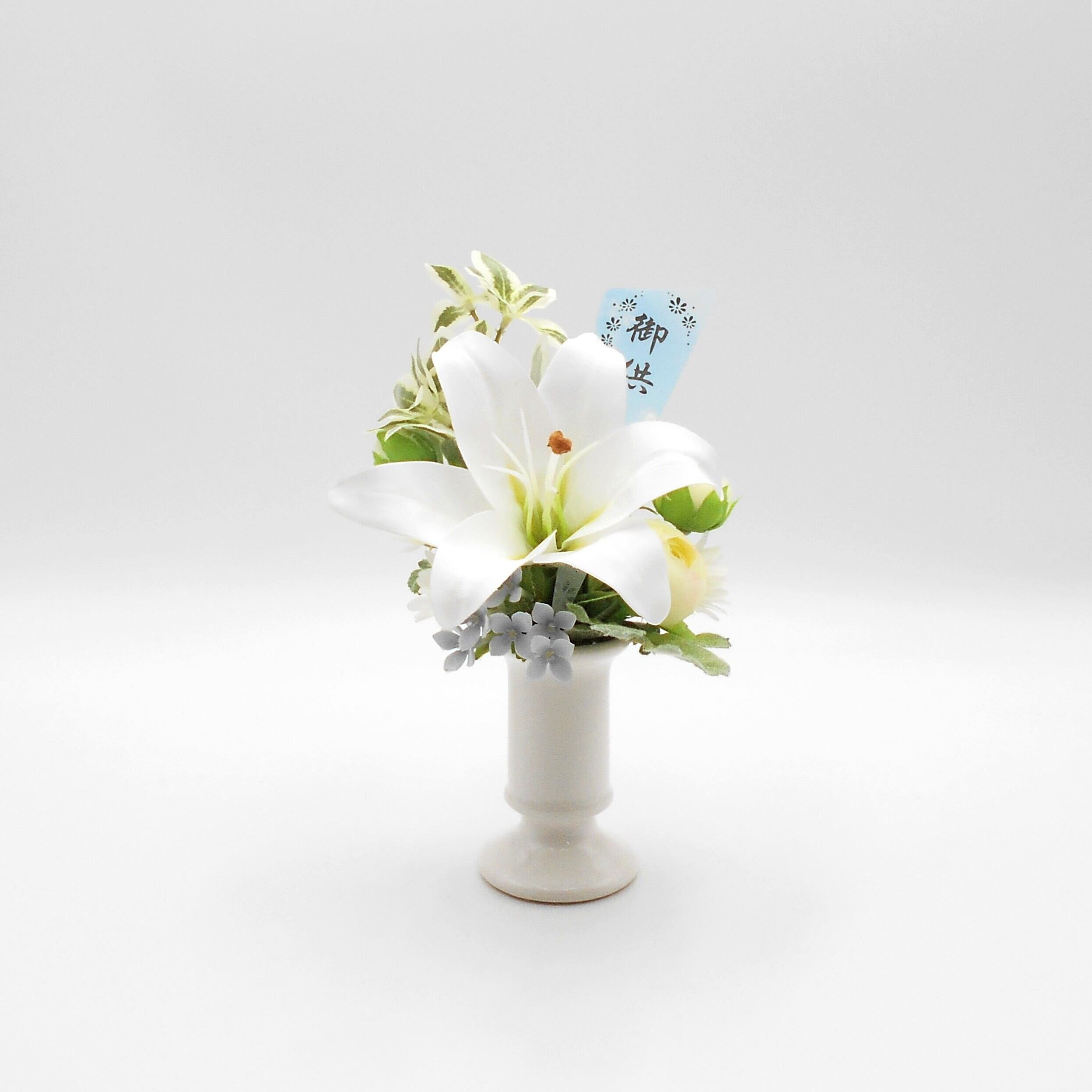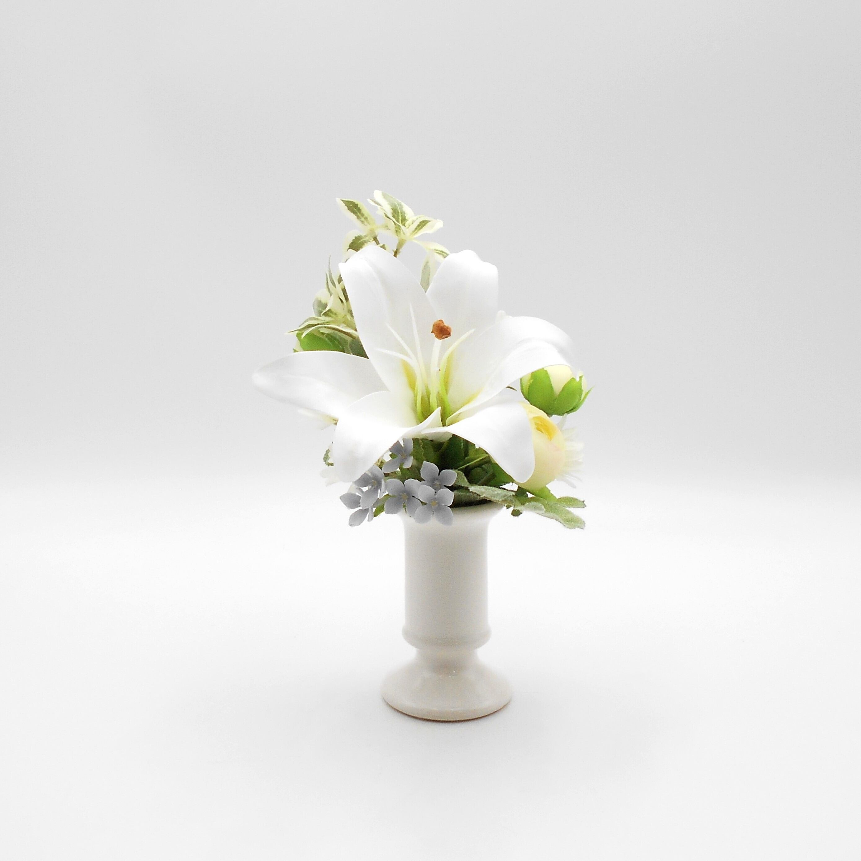 仏花 ミニ大きめ 白い百合の花 アーティシャルフラワー 仏壇 供花 お彼岸 お盆