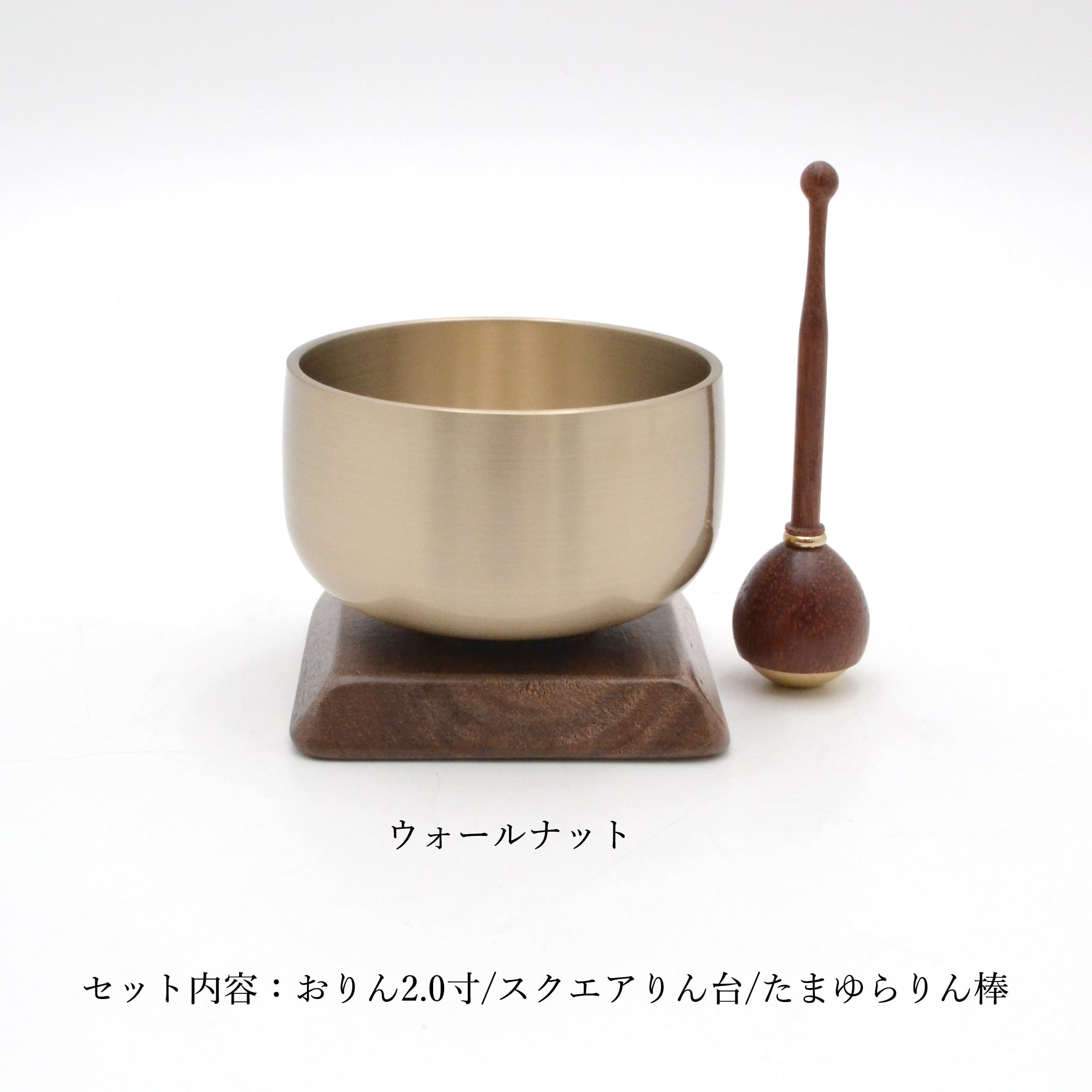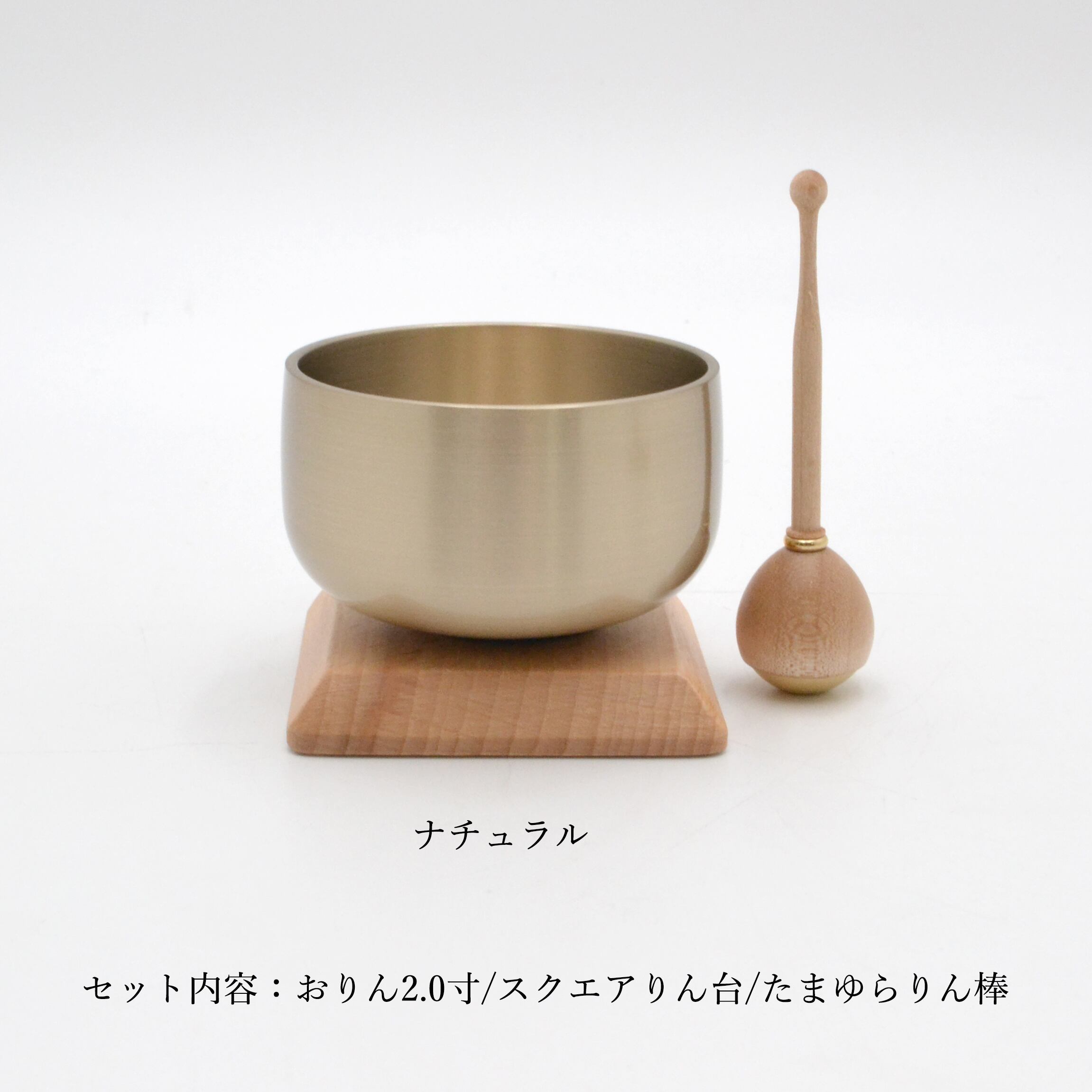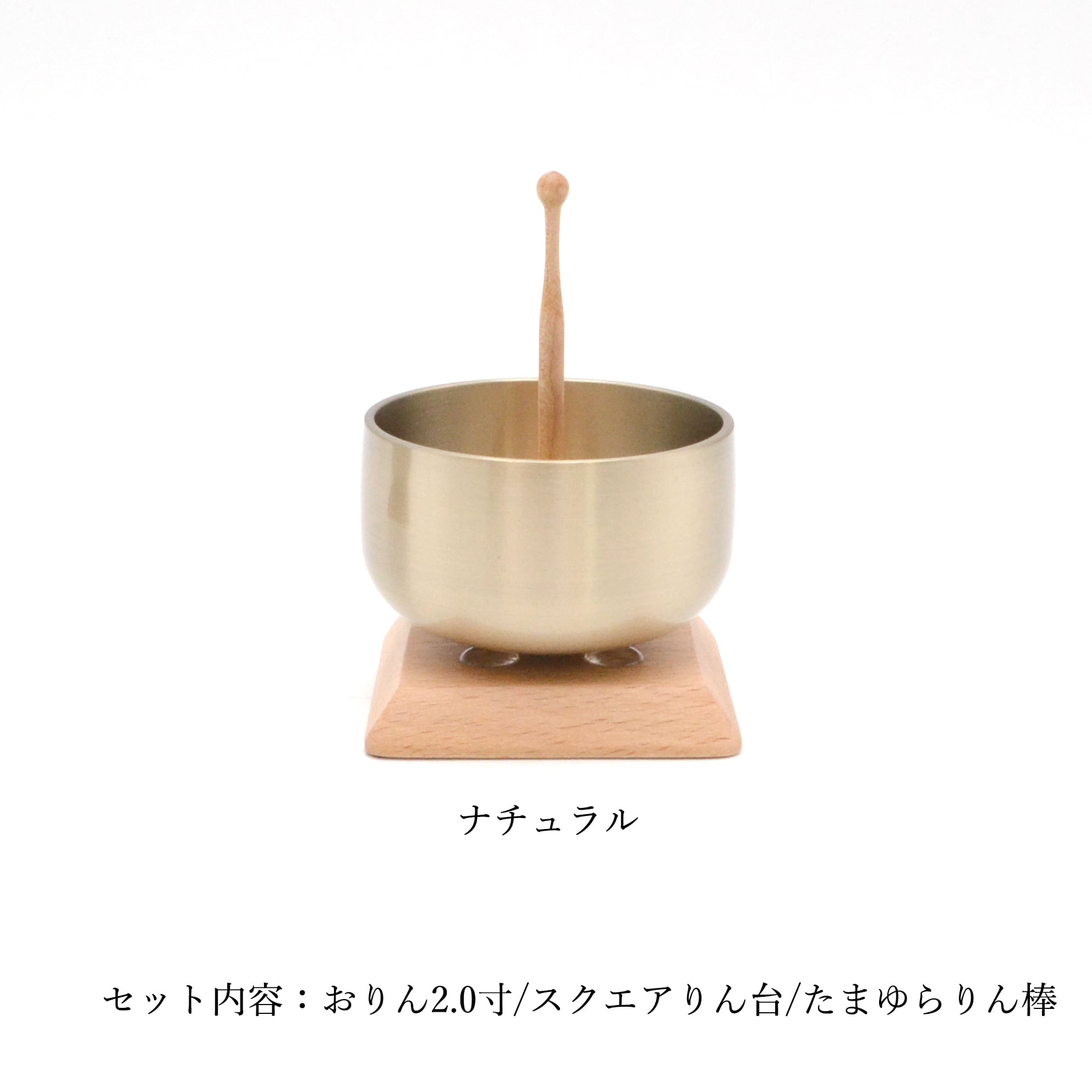 澄んだ音色のおりんとスクエア型のスリムなりん台と