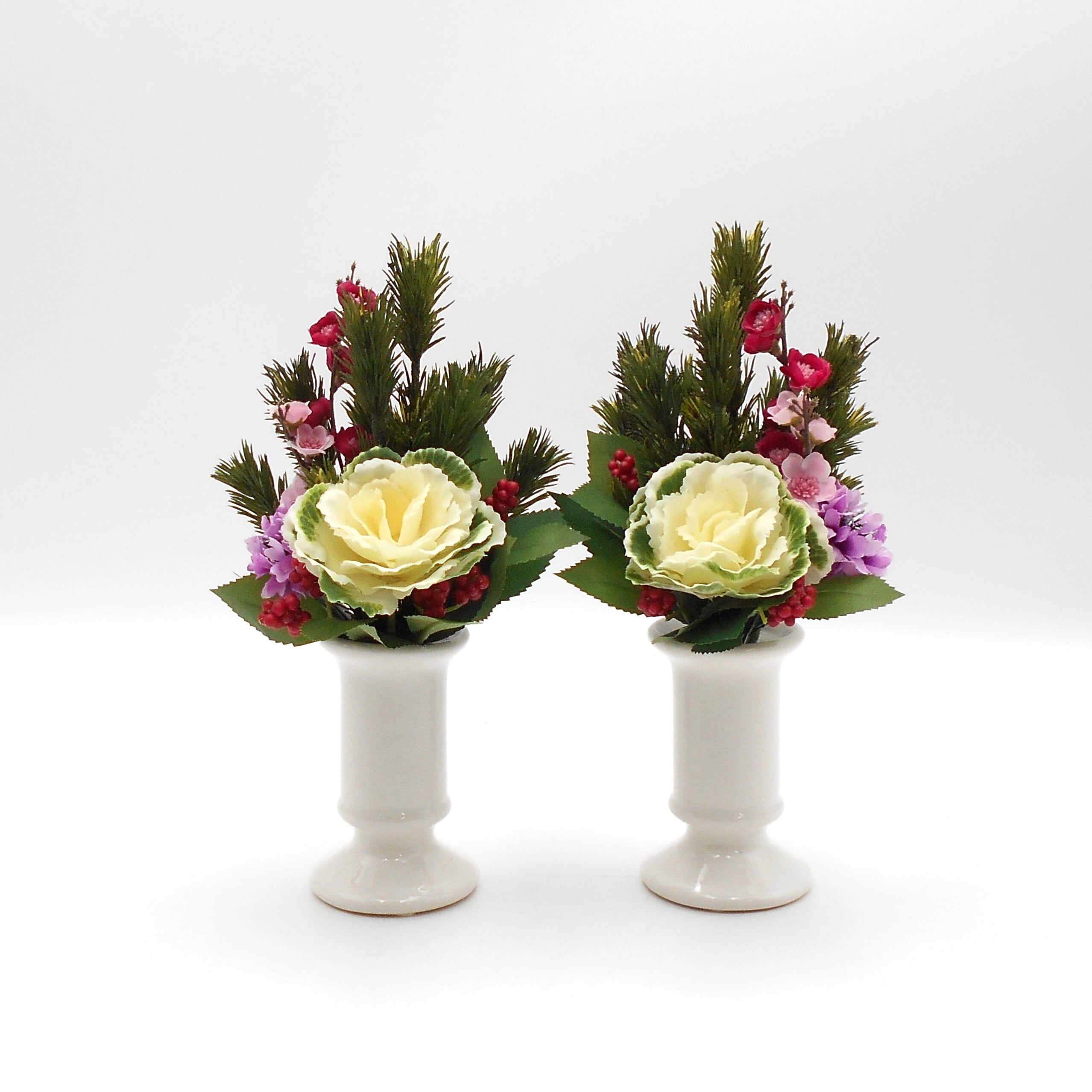 仏花 お正月 エゾ松 ミニ 1対 アーティシャルフラワー 仏壇 供花 お彼岸 お盆