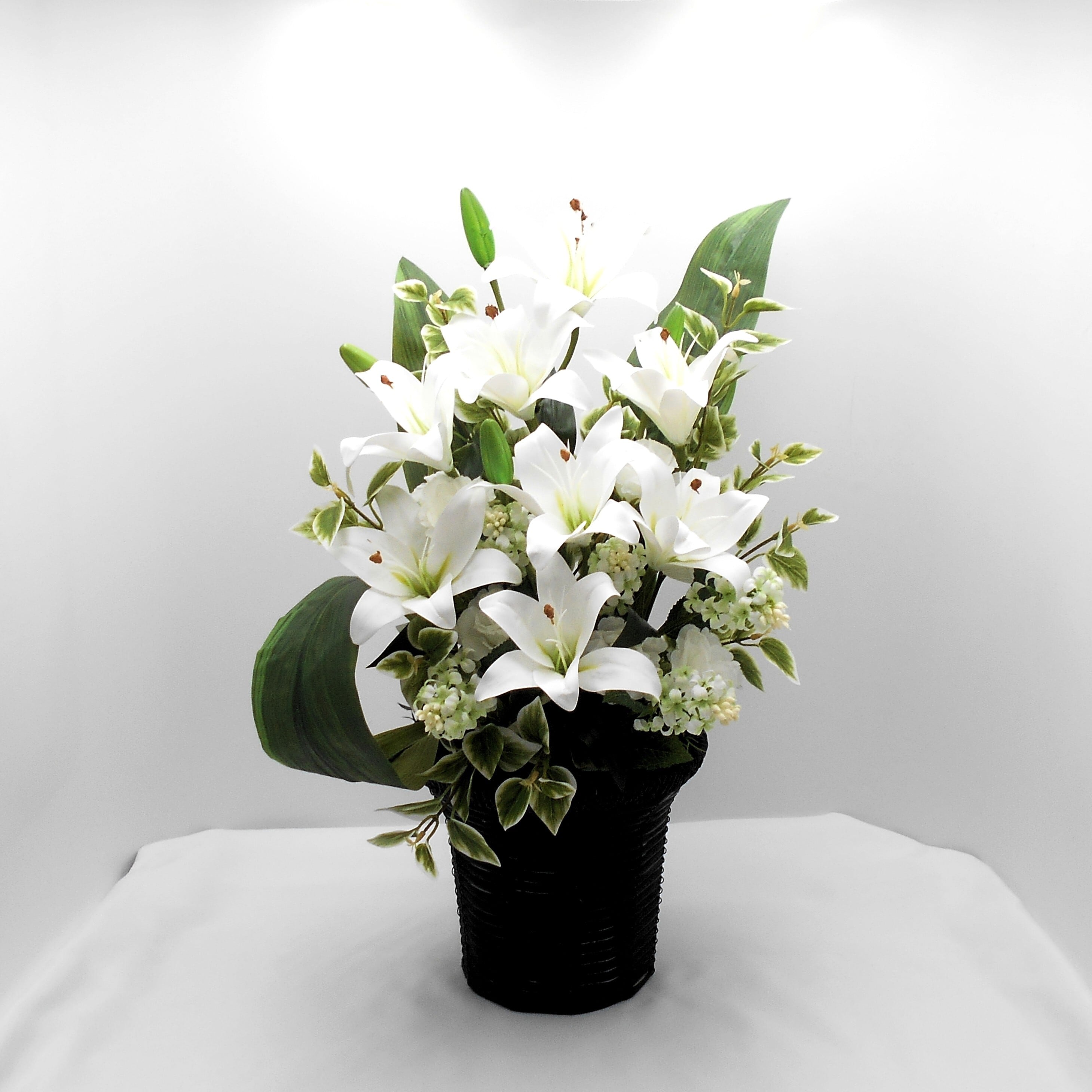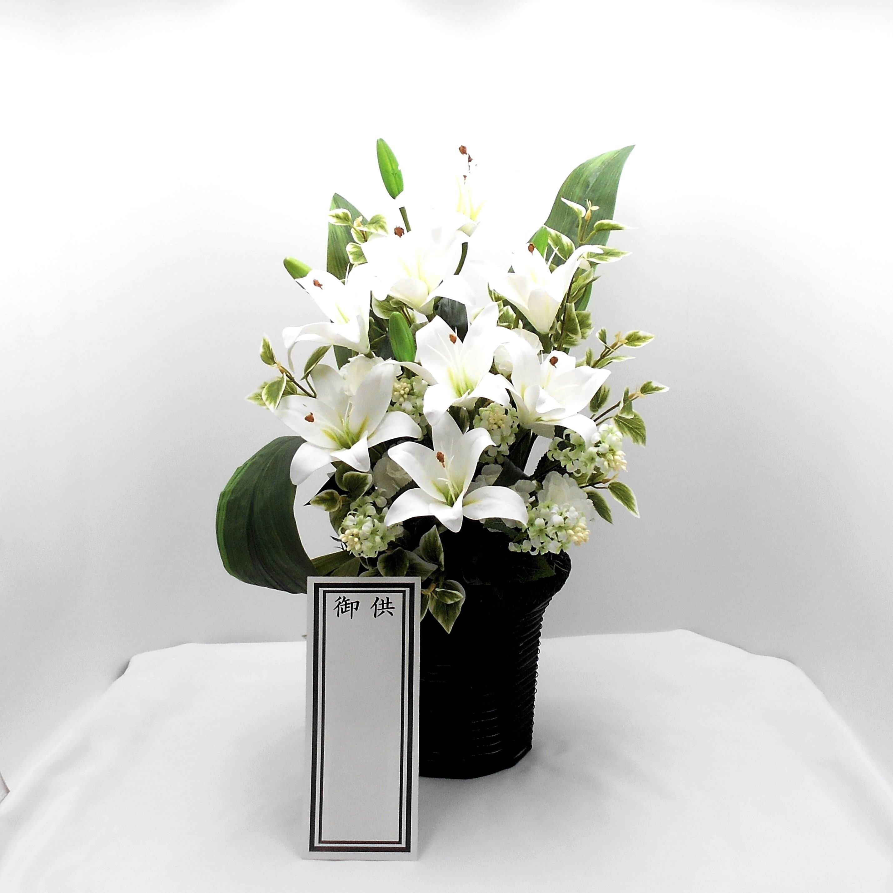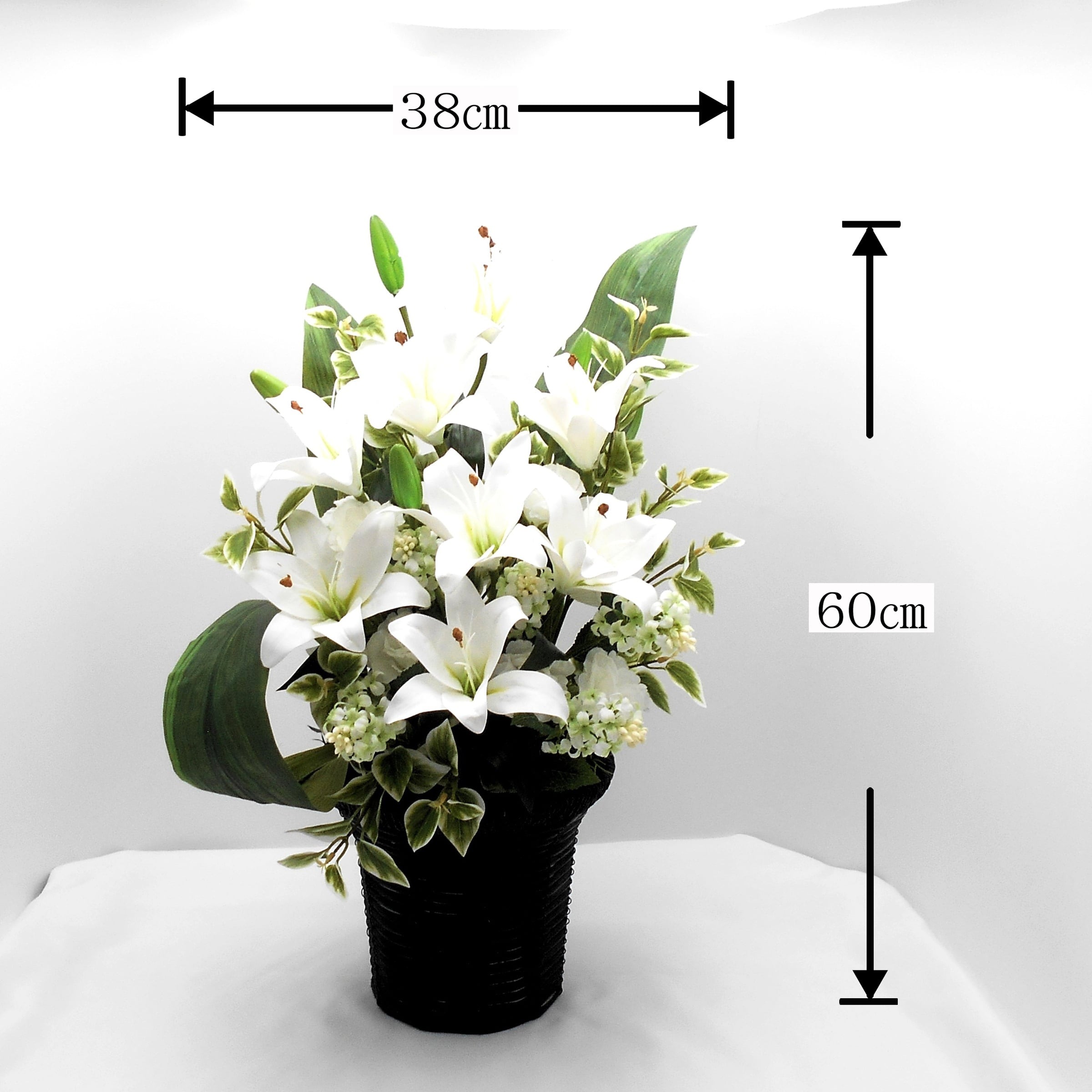 仏花 アレンジ 総高さ60㎝ 百合の花 アーティシャルフラワー 仏壇 供花 お彼岸 お盆