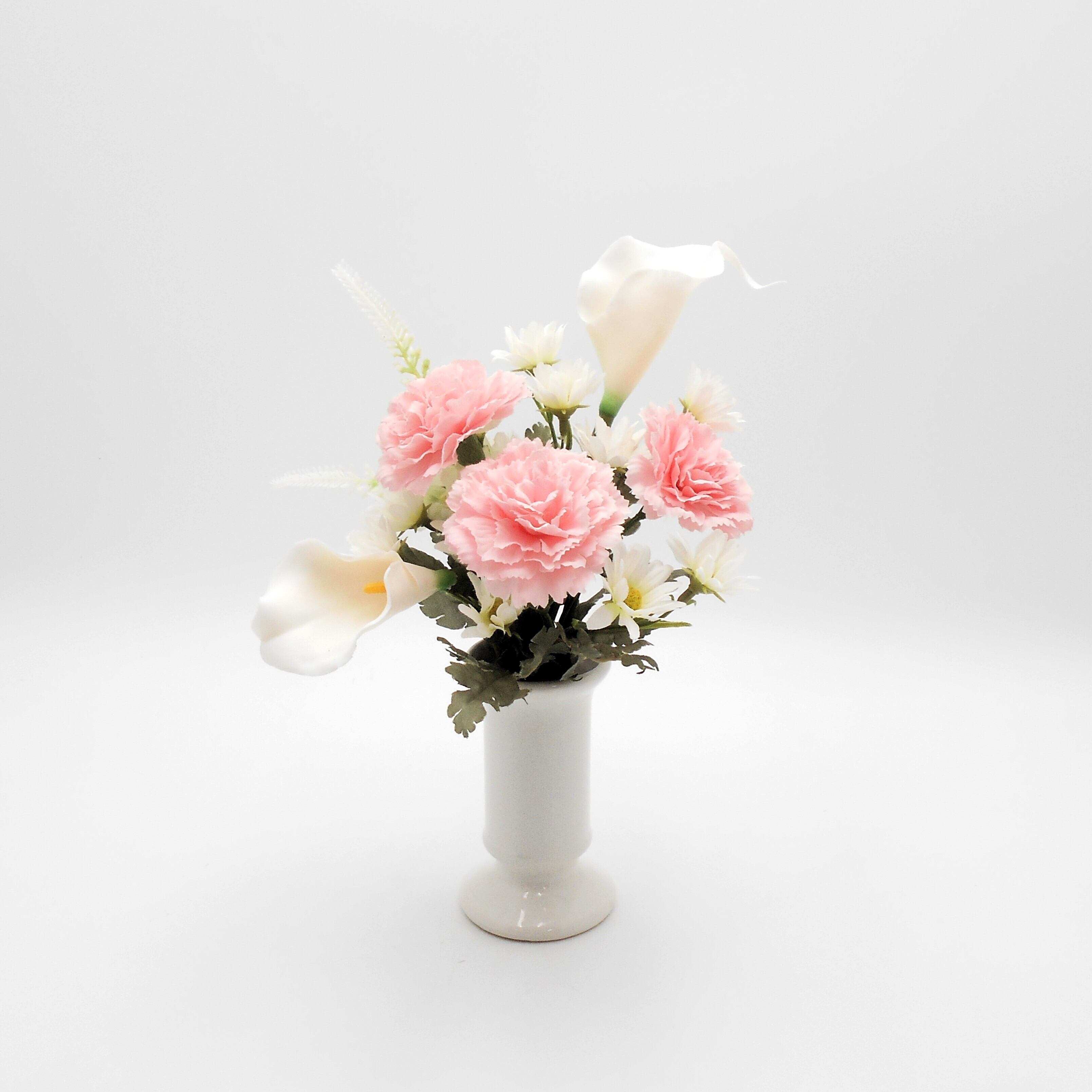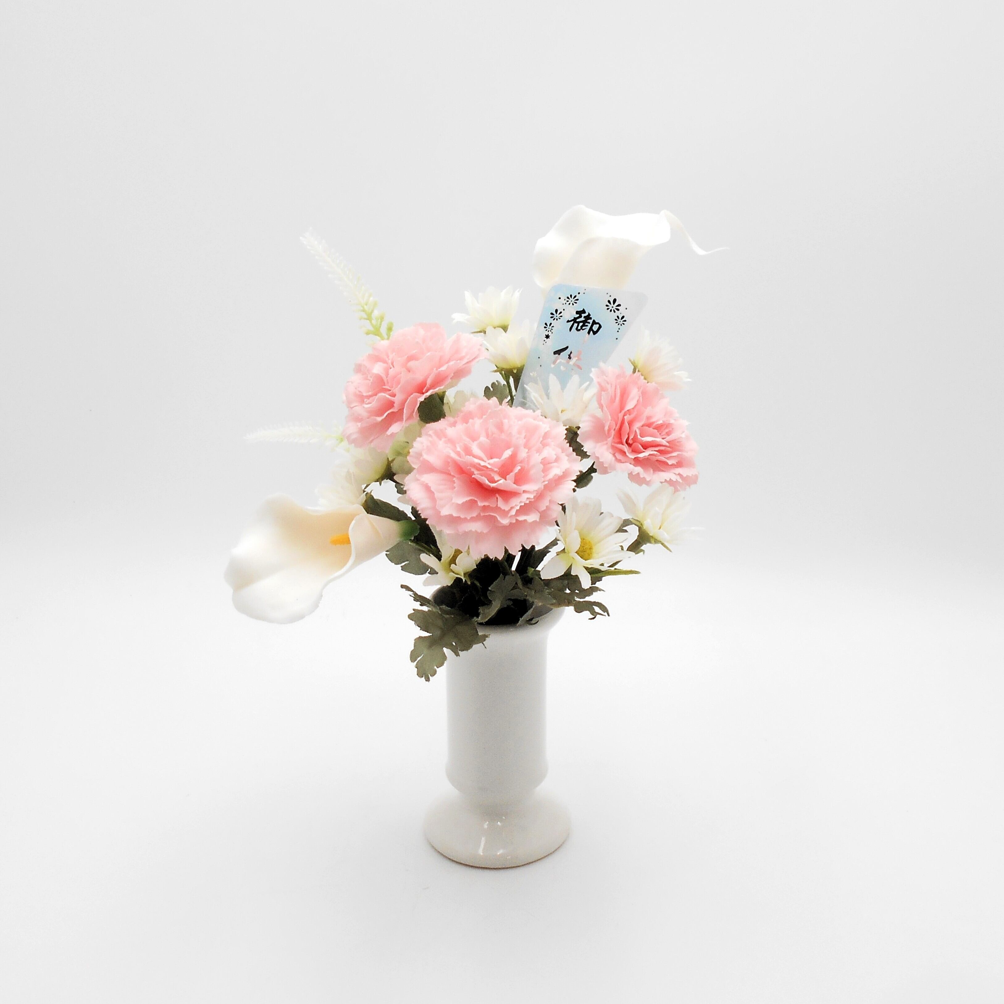 仏花 アレンジ カーネーション・カラーの花 アーティシャルフラワー 仏壇 供花 お彼岸 お盆