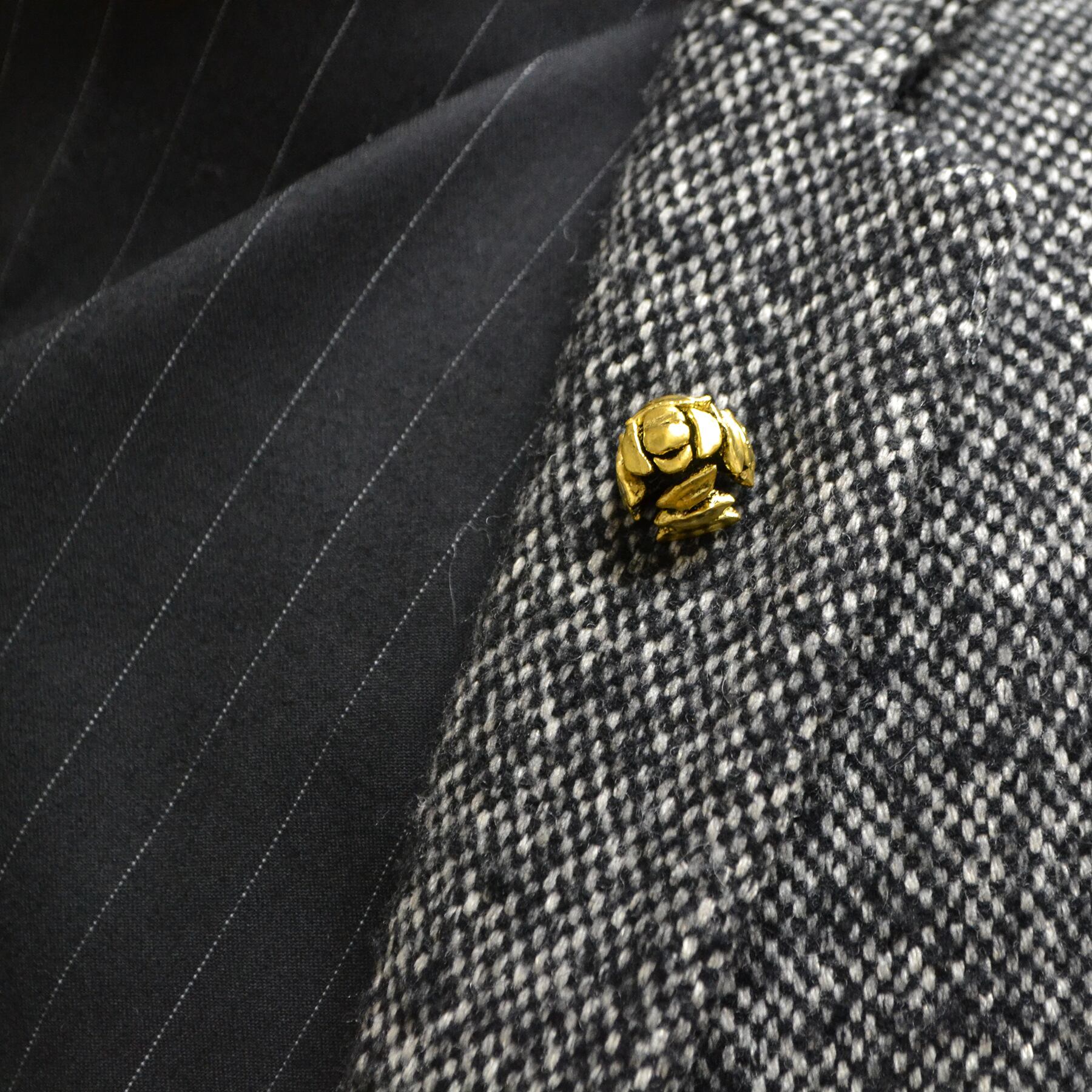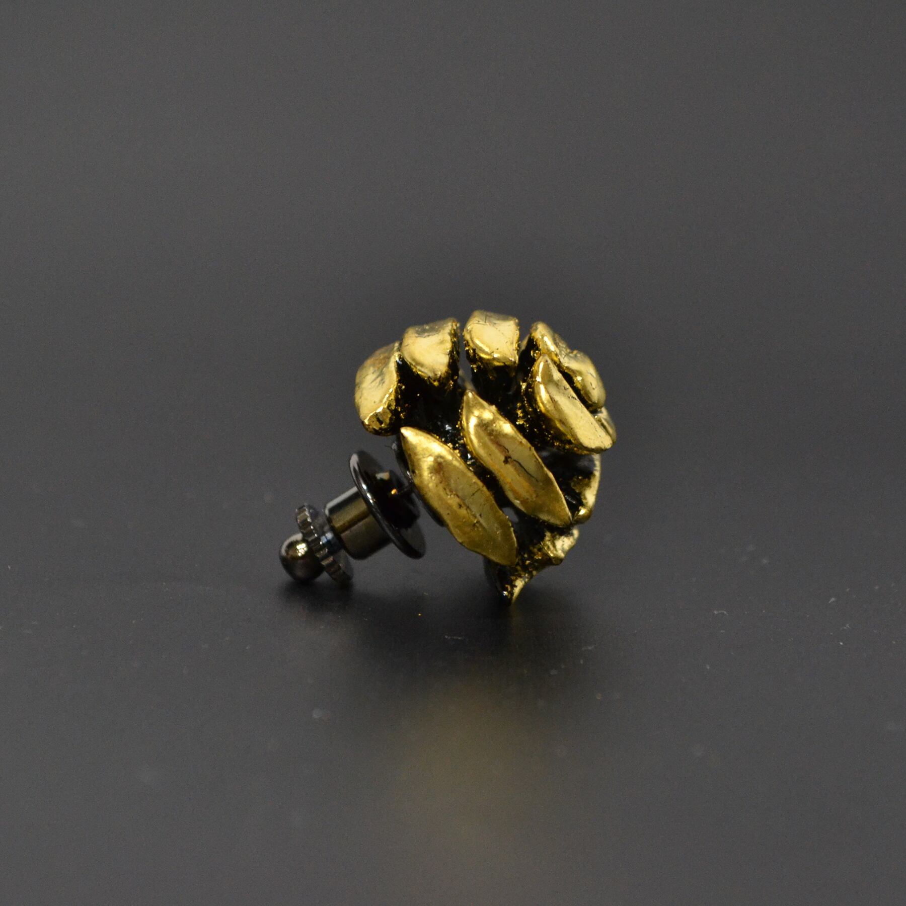 立体感があるピンブローチ・タイタック。個性的で金箔の風合いが豪華。