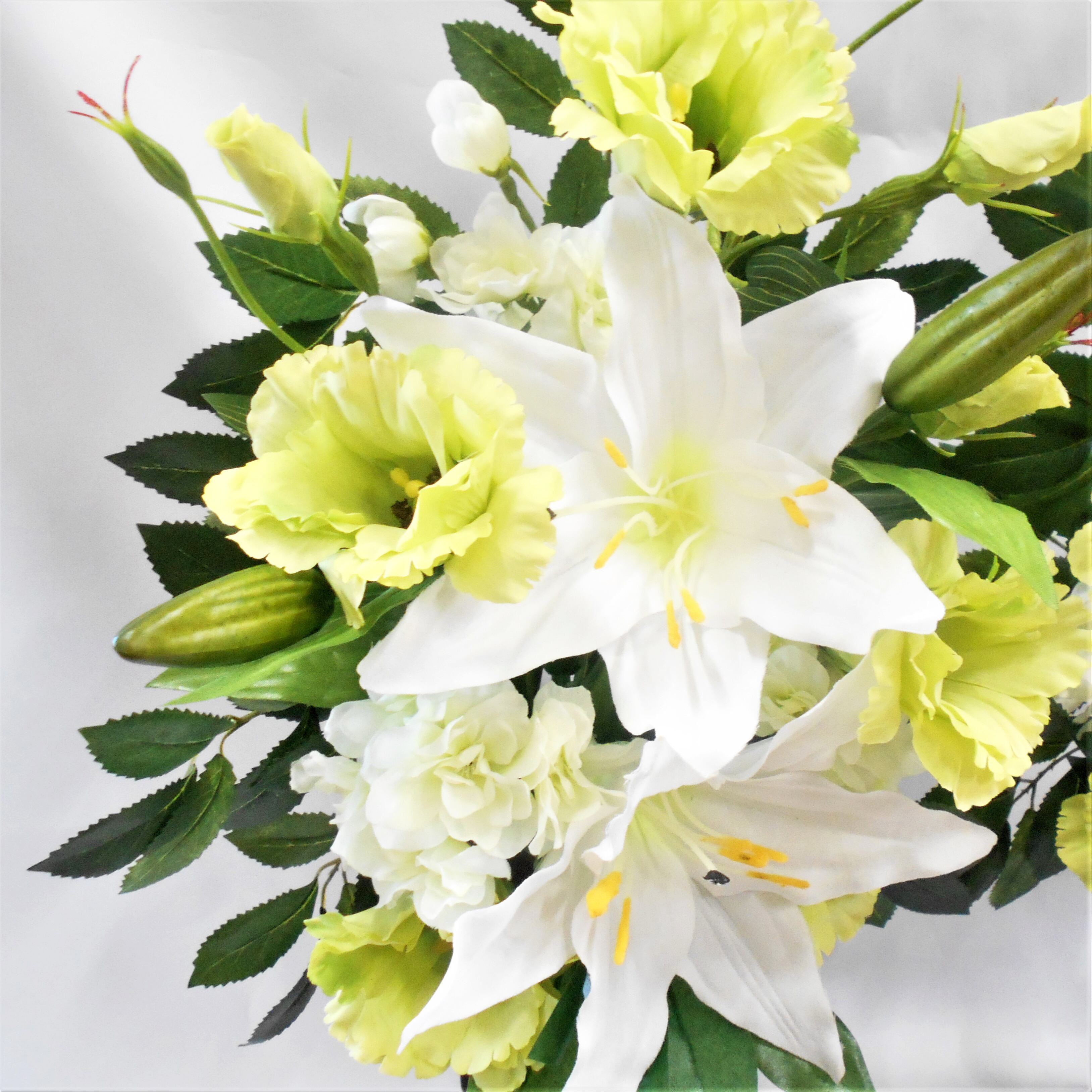 仏花 墓花 総高さ55㎝ 1対 カサブランカ・トルコキキョウ アーティシャルフラワー仏壇 供花 お彼岸 お盆