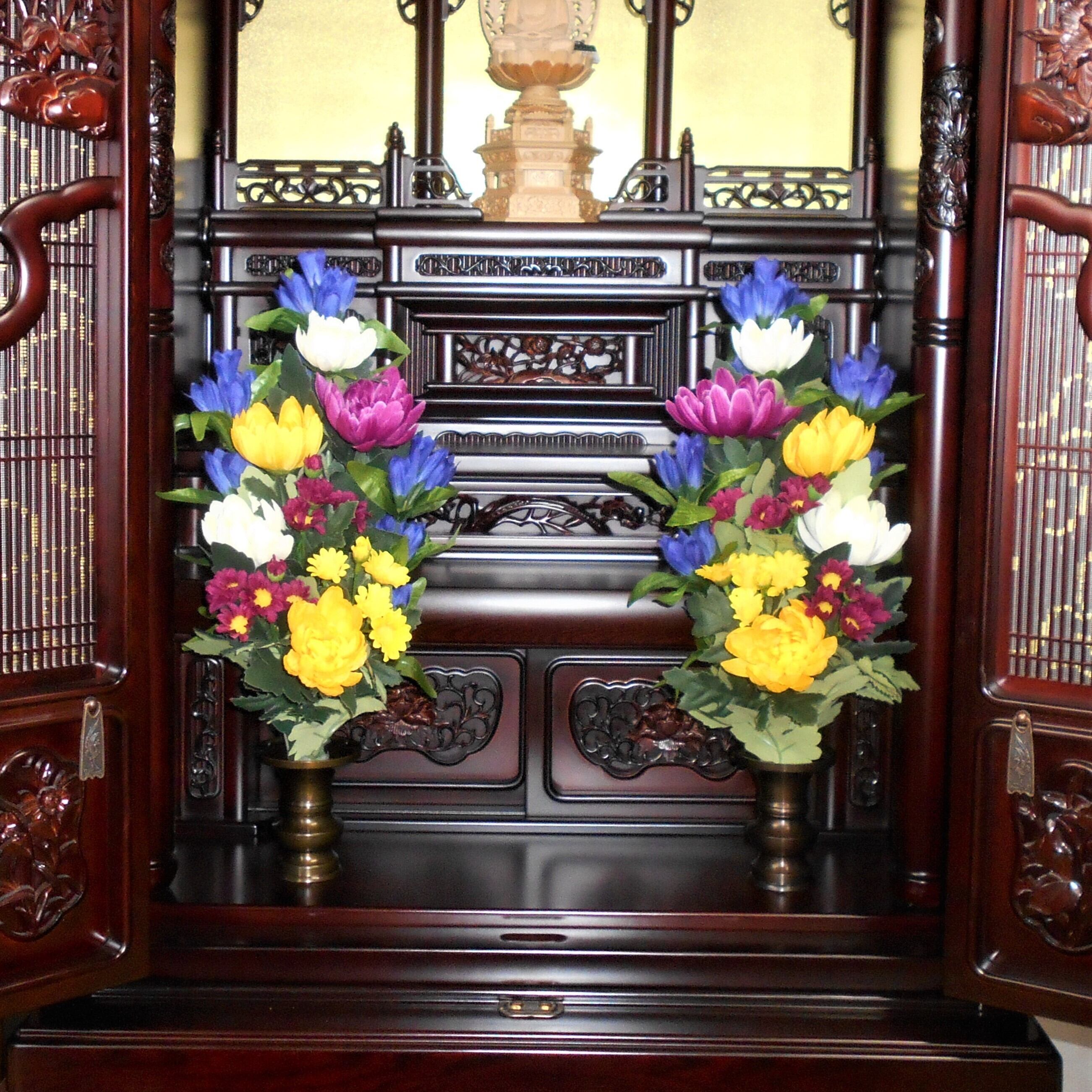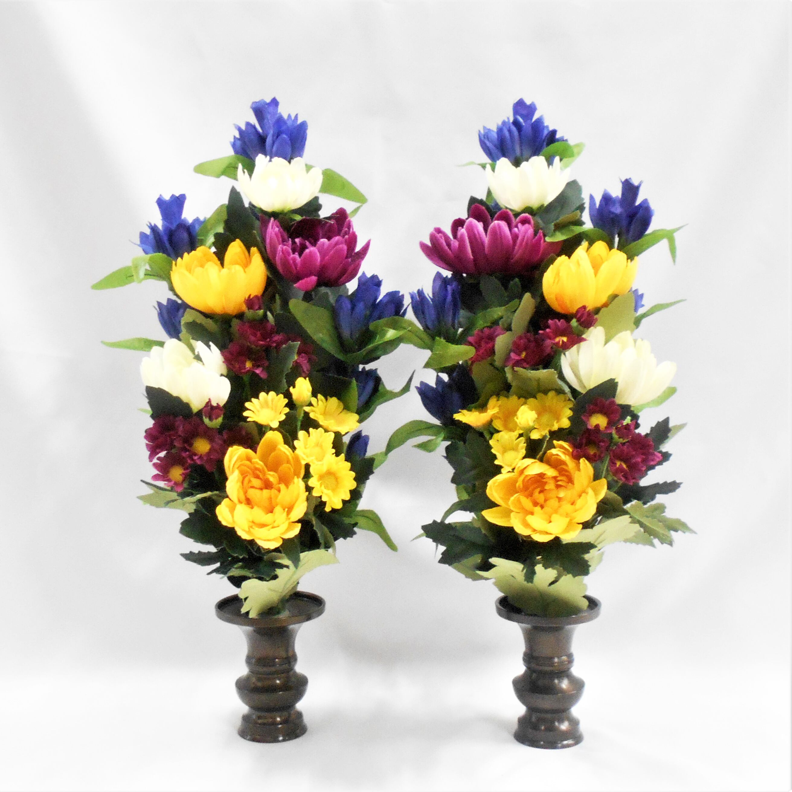 仏花【お仏壇内などに】Mスリム 1対 菊の花・りんどう アーティシャルフラワー仏壇 供花 お彼岸 お盆