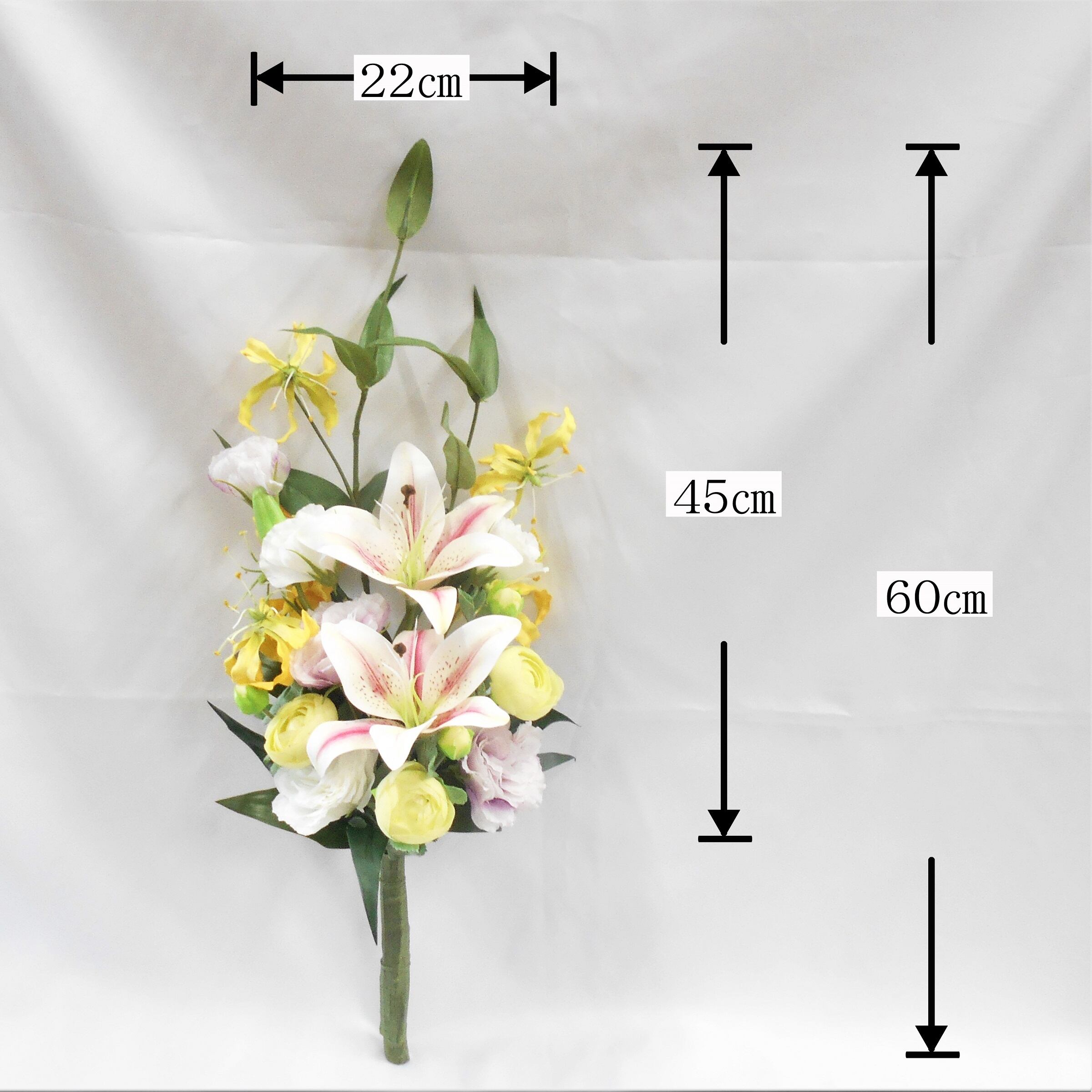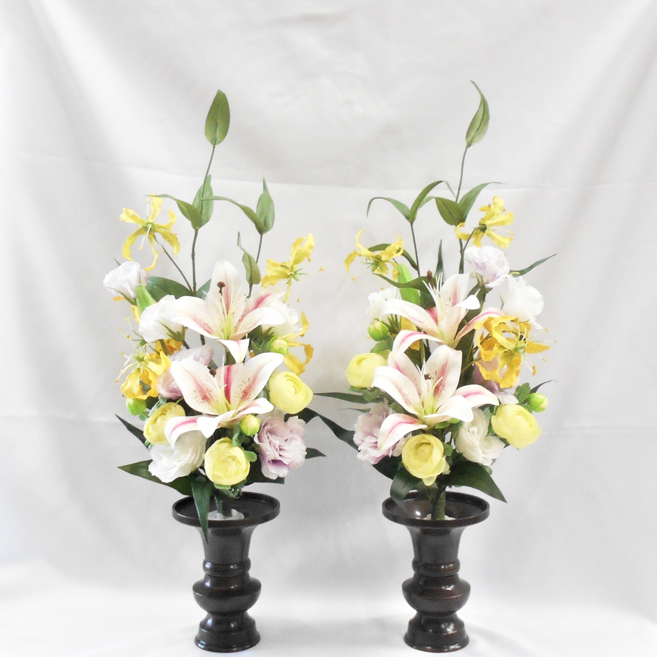 仏花 墓花 総高さ60㎝ 1対 百合・トルコキキョウ アーティシャルフラワー仏壇 供花 お彼岸 お盆