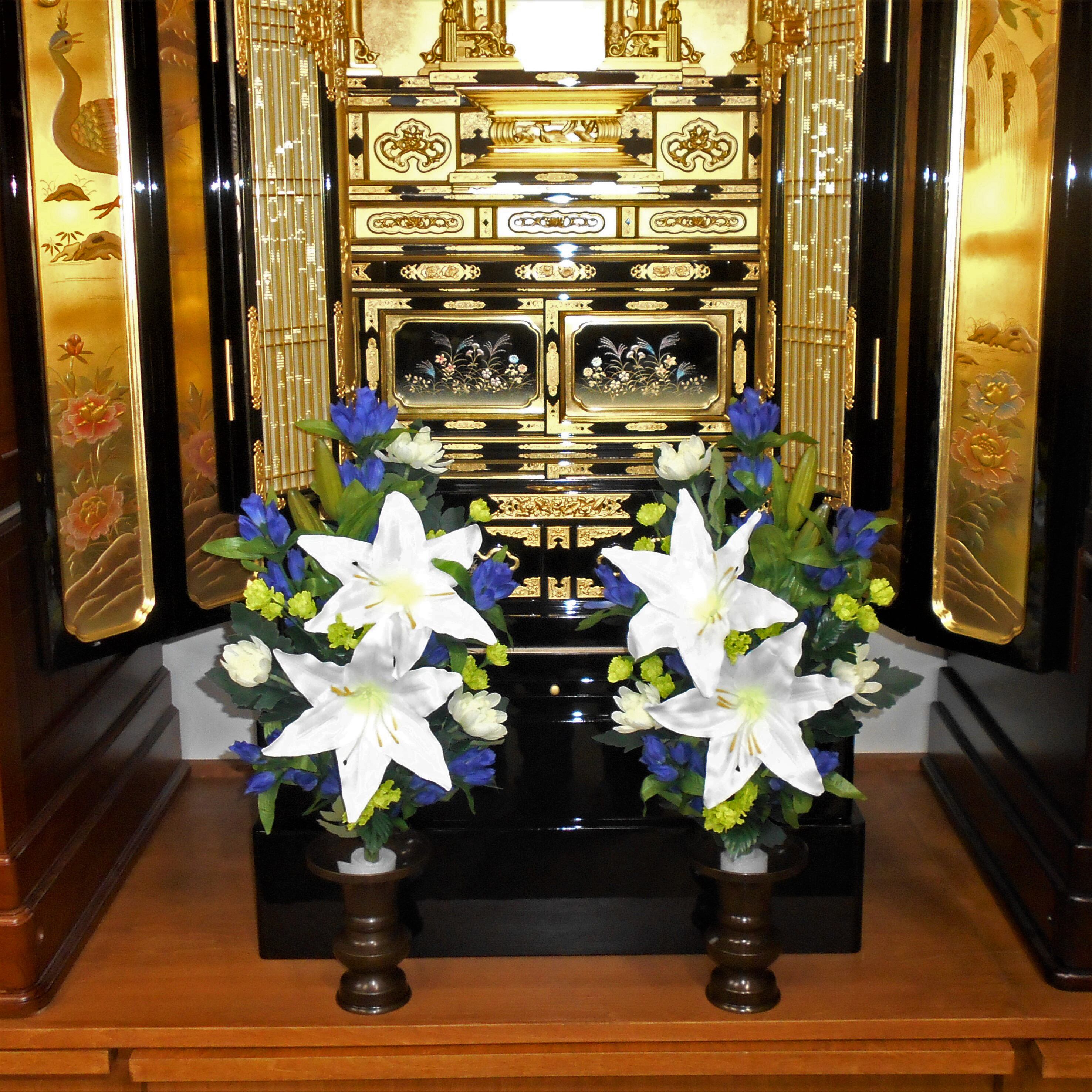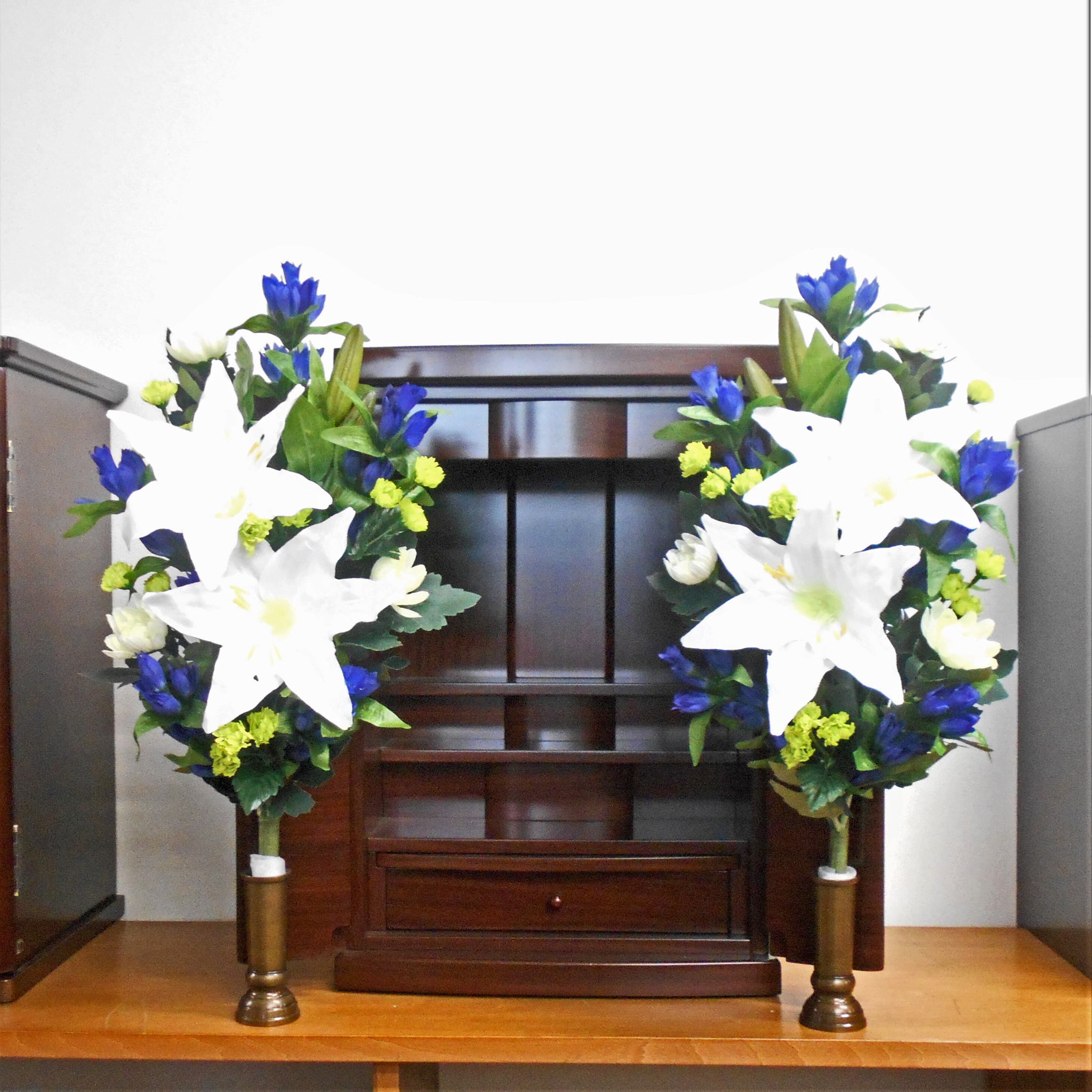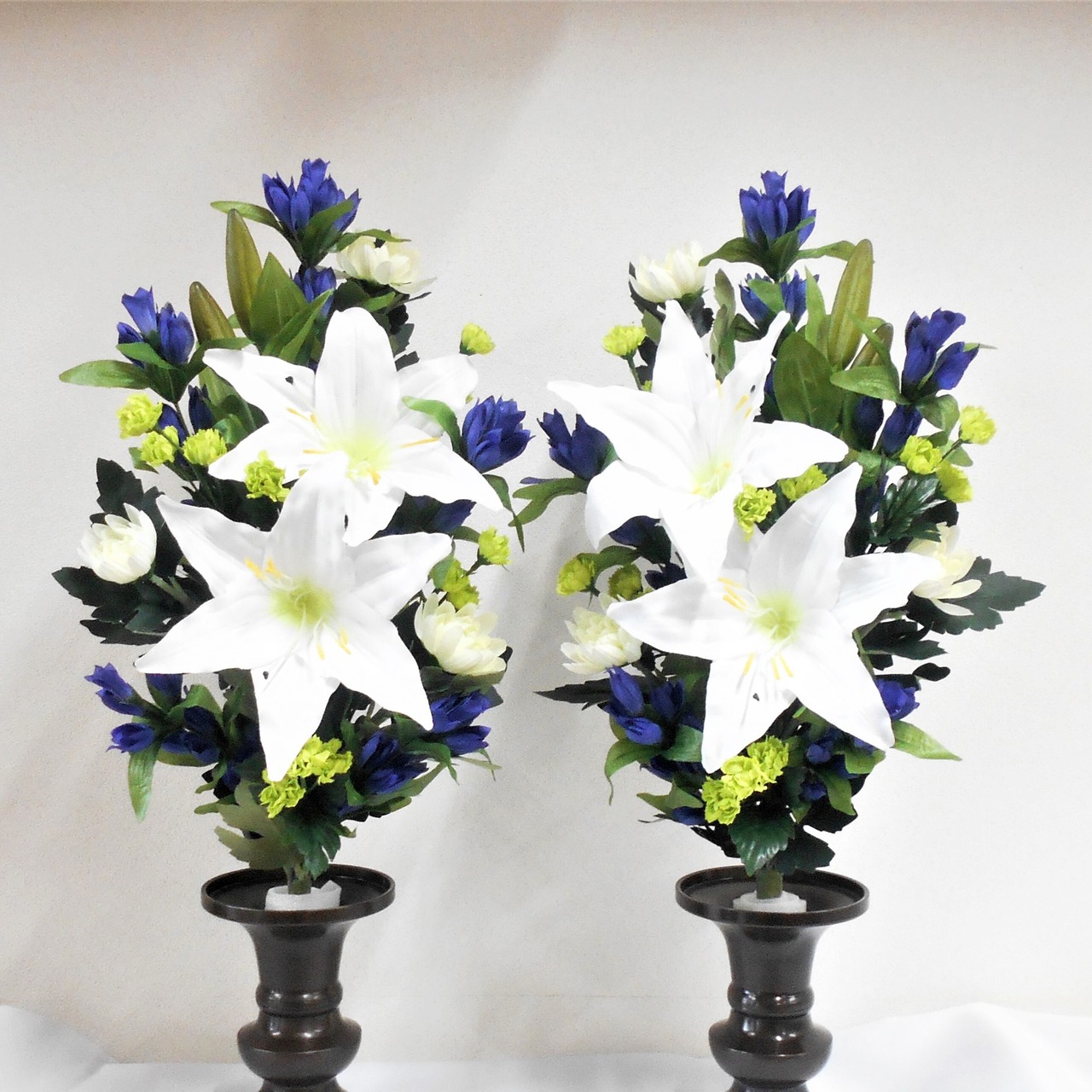 仏花 墓花 総高さ61㎝ 1対 カサブランカ・りんどう アーティシャルフラワー仏壇 供花 お彼岸 お盆
