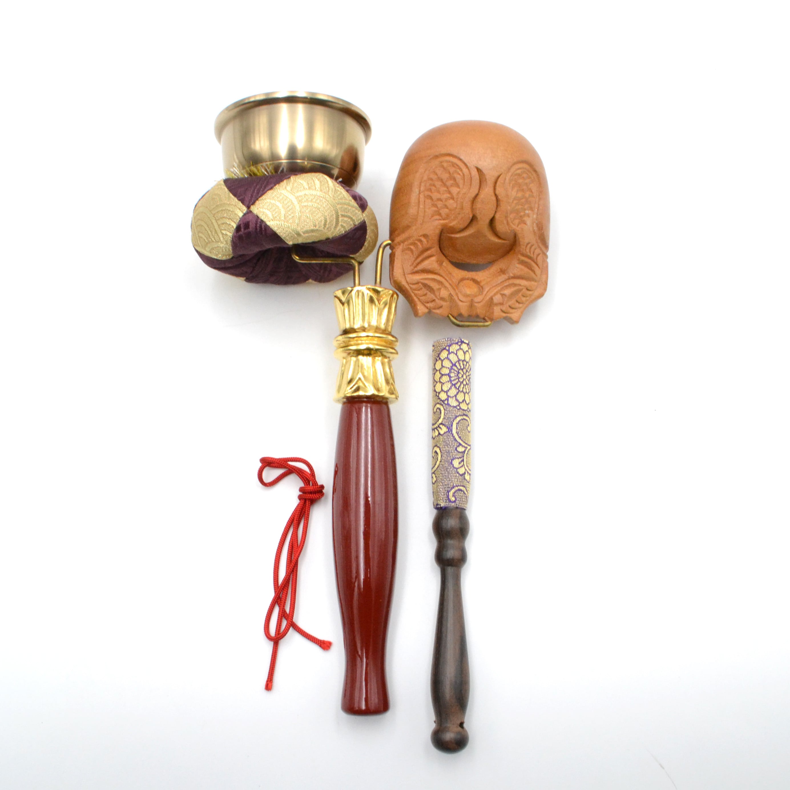 お墓での法要・お務めに最適のりんと木魚がセットになった印金杢魚セット