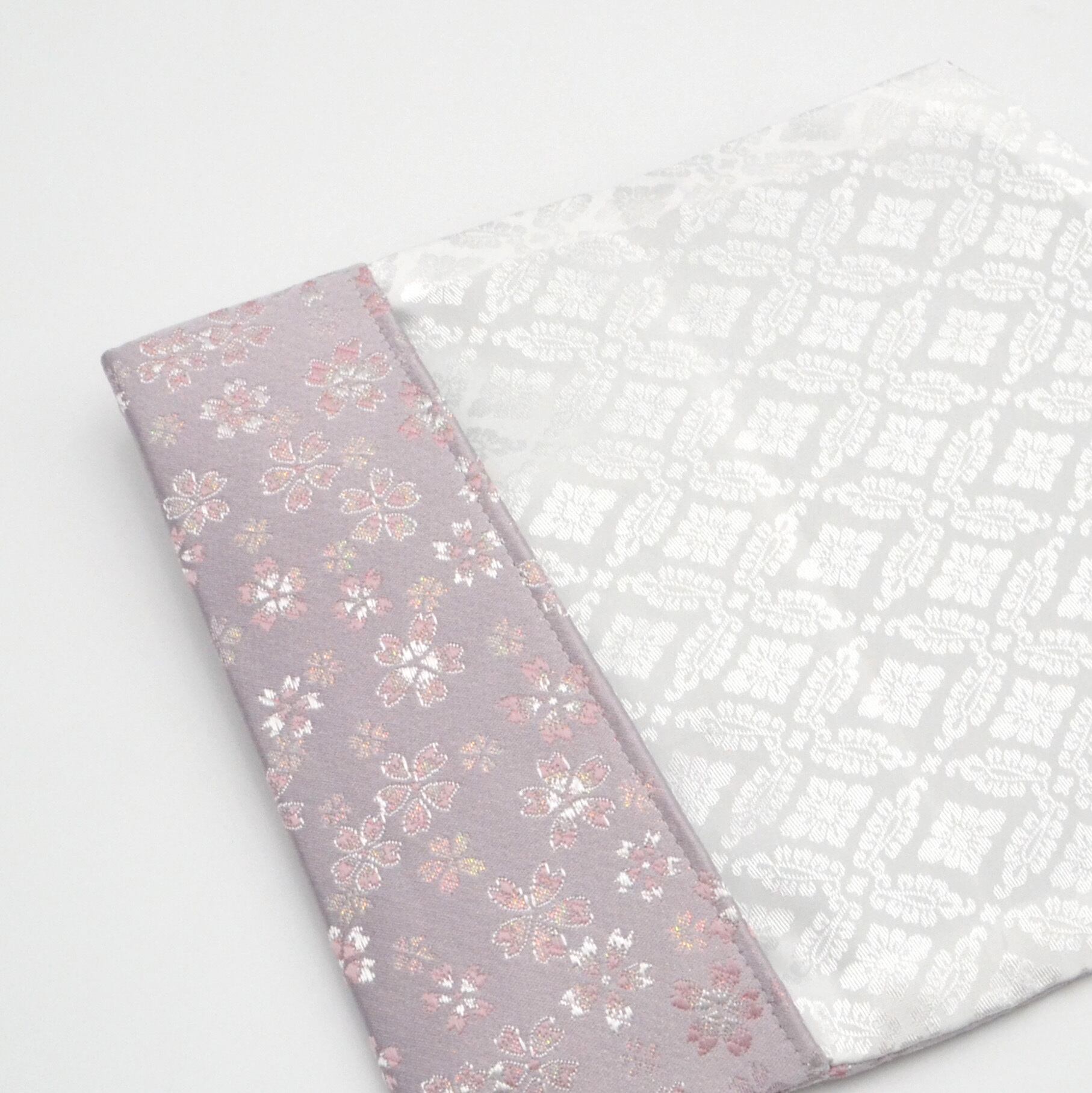 薄紫と薄ピンクが混ざったような上品な金襴です