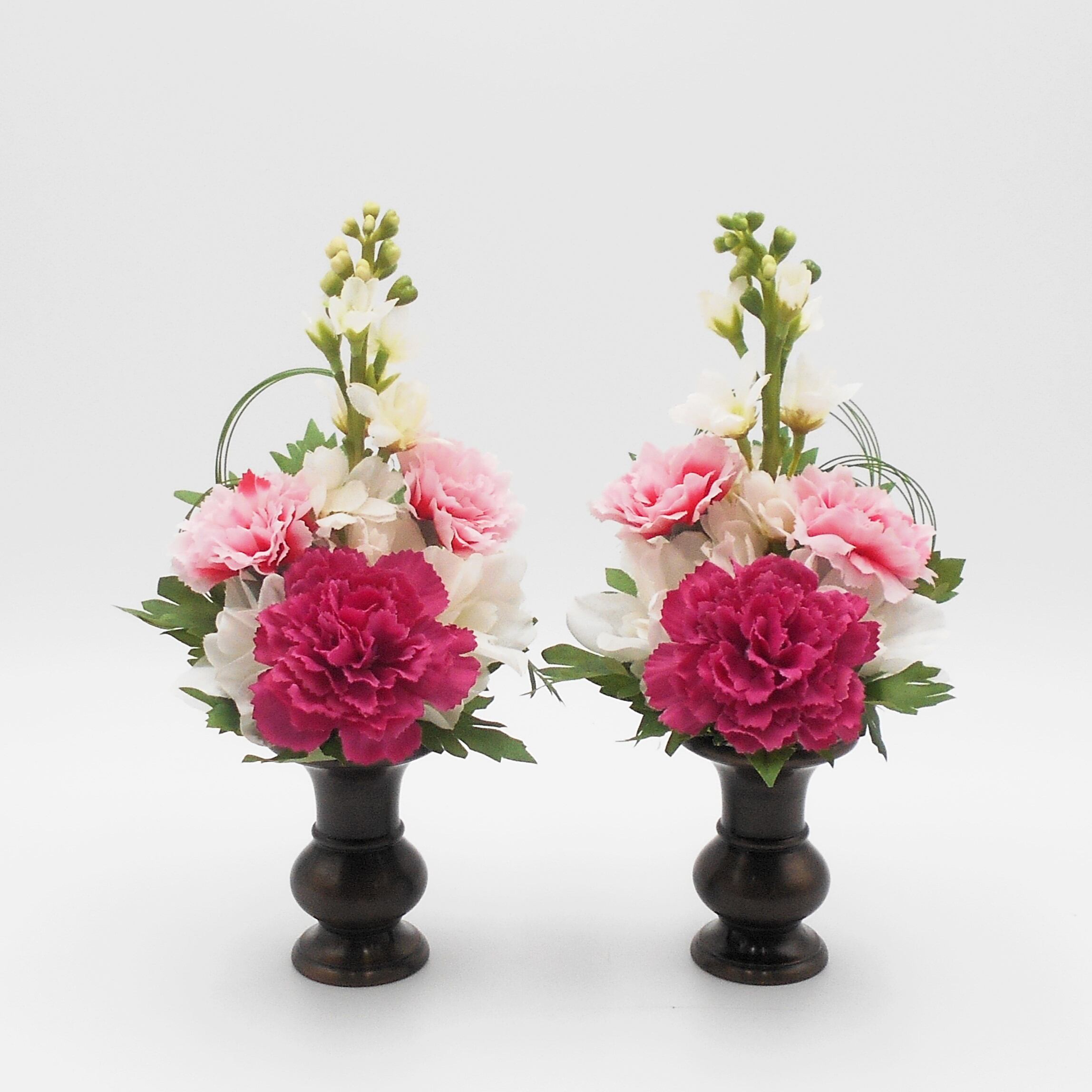 【母の日】仏花 ミニ大きめ 1対 カーネーション アーティシャルフラワー 仏壇 供花 お彼岸 お盆