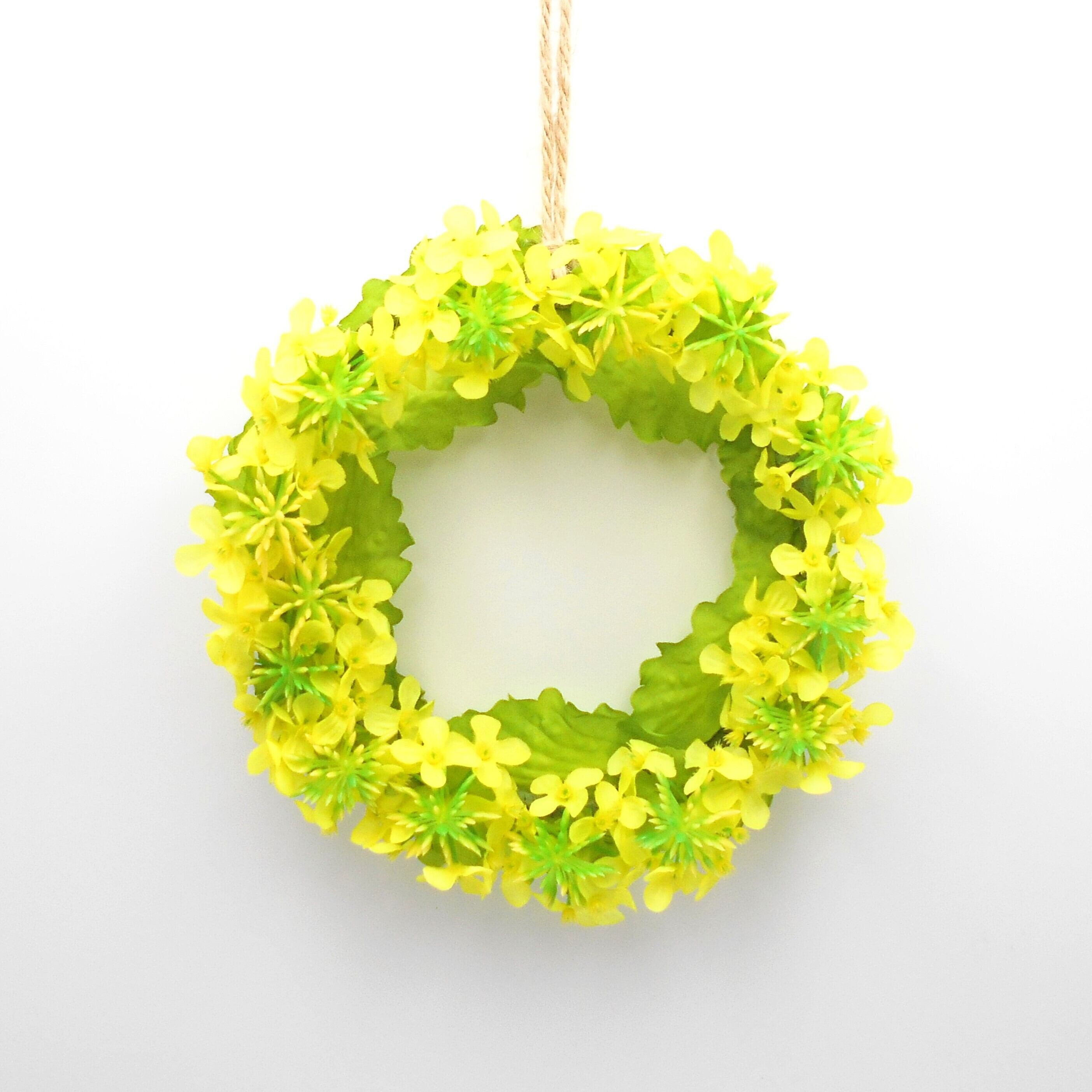 菜の花のシンプルなリース飾り♪ 春♪ アーティシャルフラワー