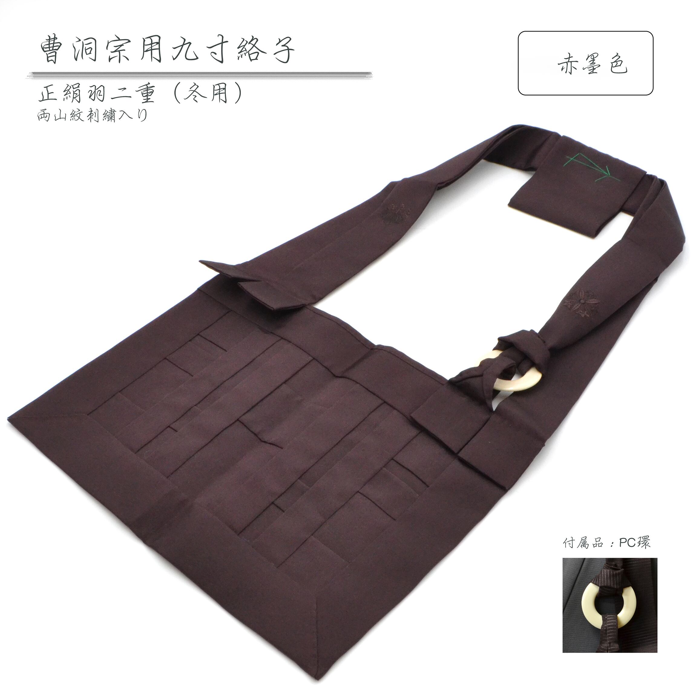 絡子 九寸仕立 曹洞宗 正絹羽二重 赤墨色 両山紋刺繍 法衣 寺院用仏具 送料無料
