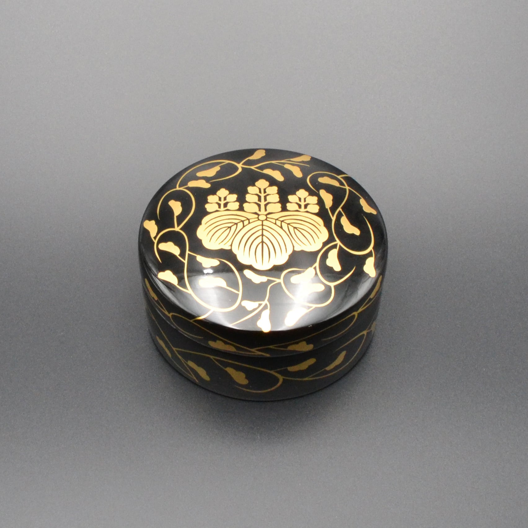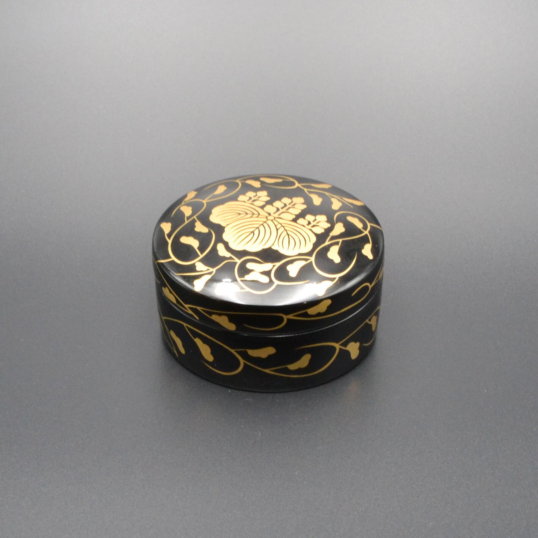 木製香合 桐紋 唐草蒔絵入り 2.5寸 寺院用仏具 一般仏具 切立型タイプ