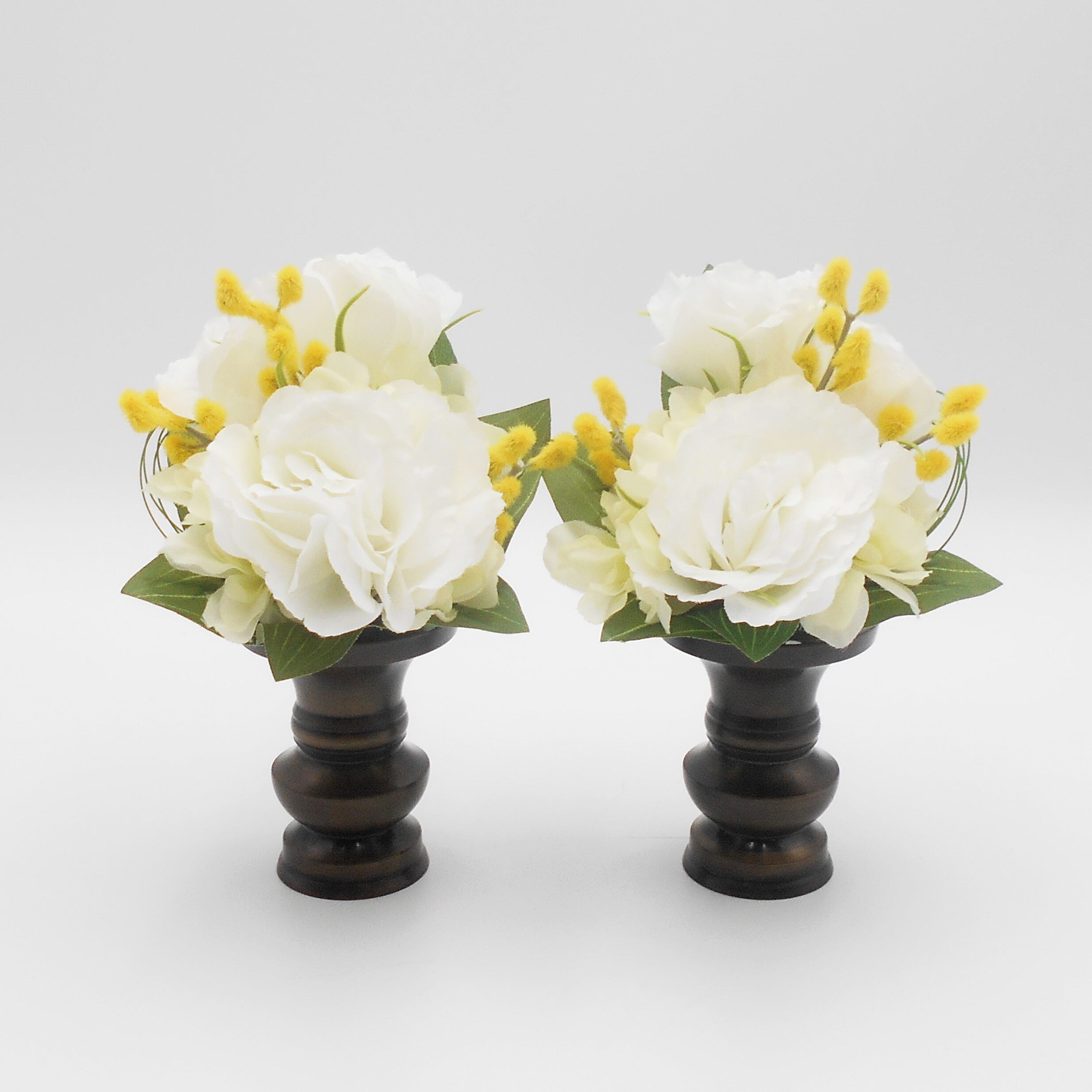仏花 ミニ 1対 トルコキキョウ・ミモザ アーティシャルフラワー 仏壇 供花 お彼岸 お盆