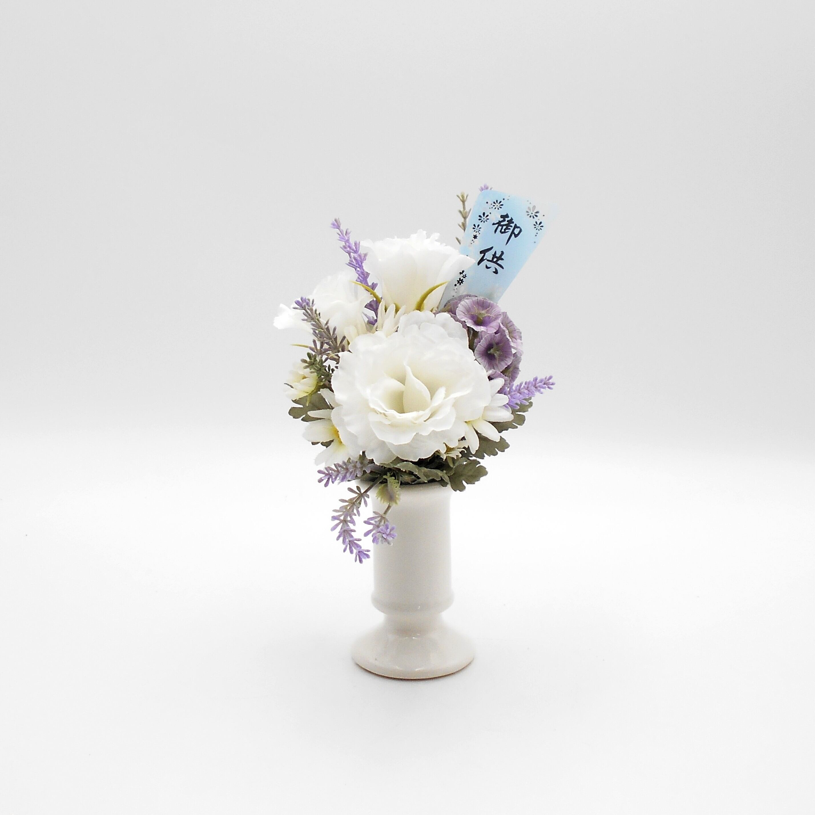 【再販】仏花 アレンジ ミニ大きめ トルコキキョウ・ラベンダー アーティシャルフラワー 仏壇 供花 お彼岸 お盆